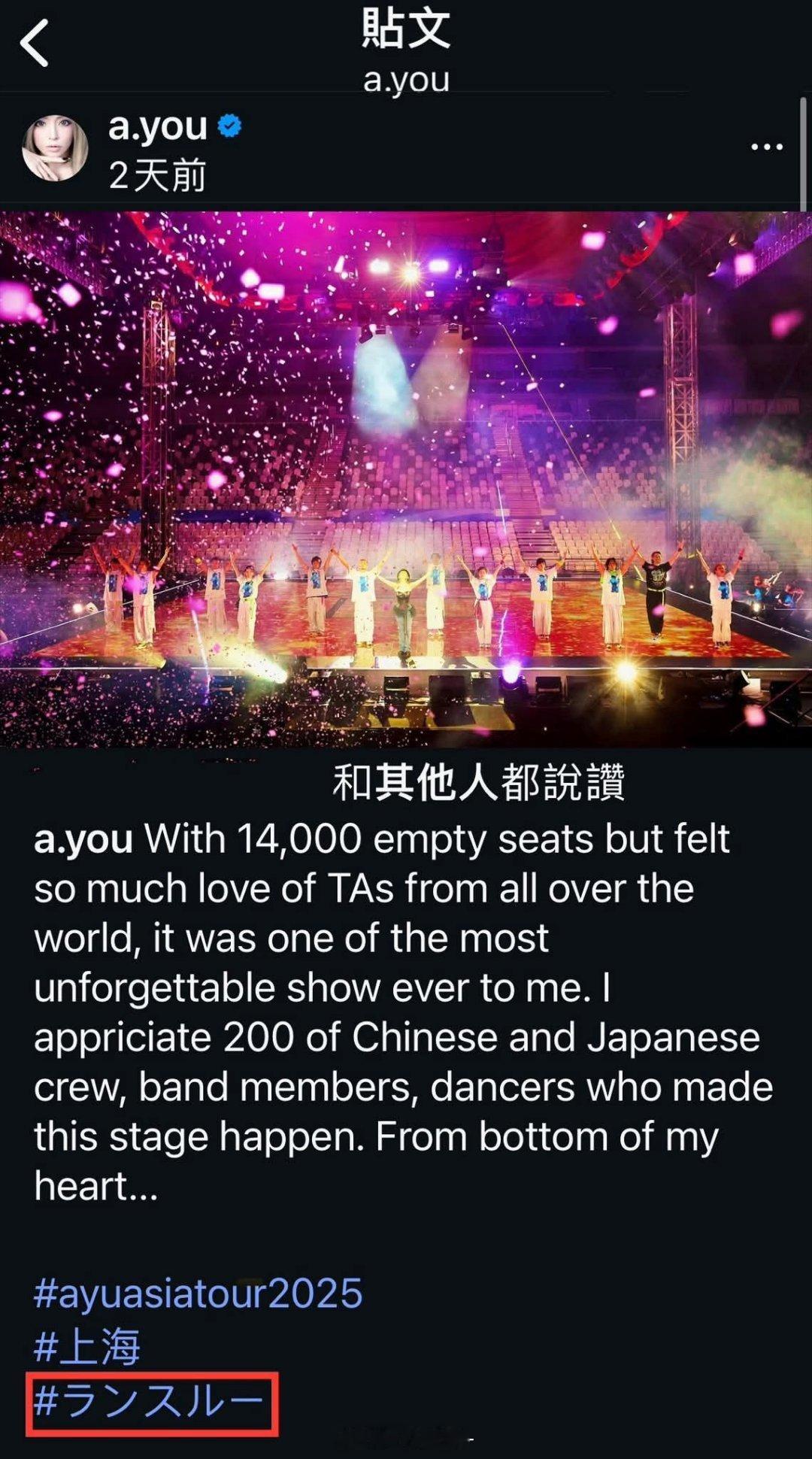 到底是彩排还是一个人独唱?还在争论不休信者恒信,不信者恒不信。当常识判断匮乏时,人们更愿意相信对自己有利的消息。滨崎步的IG、FB贴文,自己在最下面有标注是「彩排」(ランスルー)。