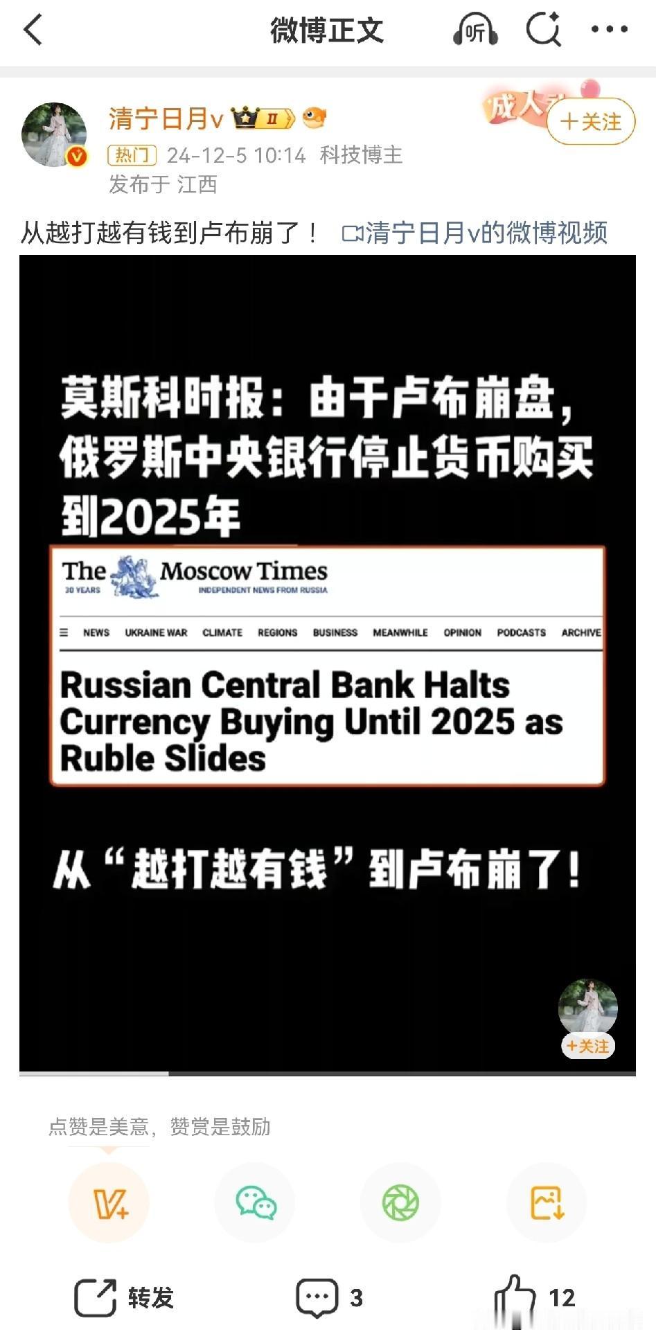 某著名军事博主曾说:2022年3月,“卢布已成废纸” 科罗抄夫:你直接报我名得