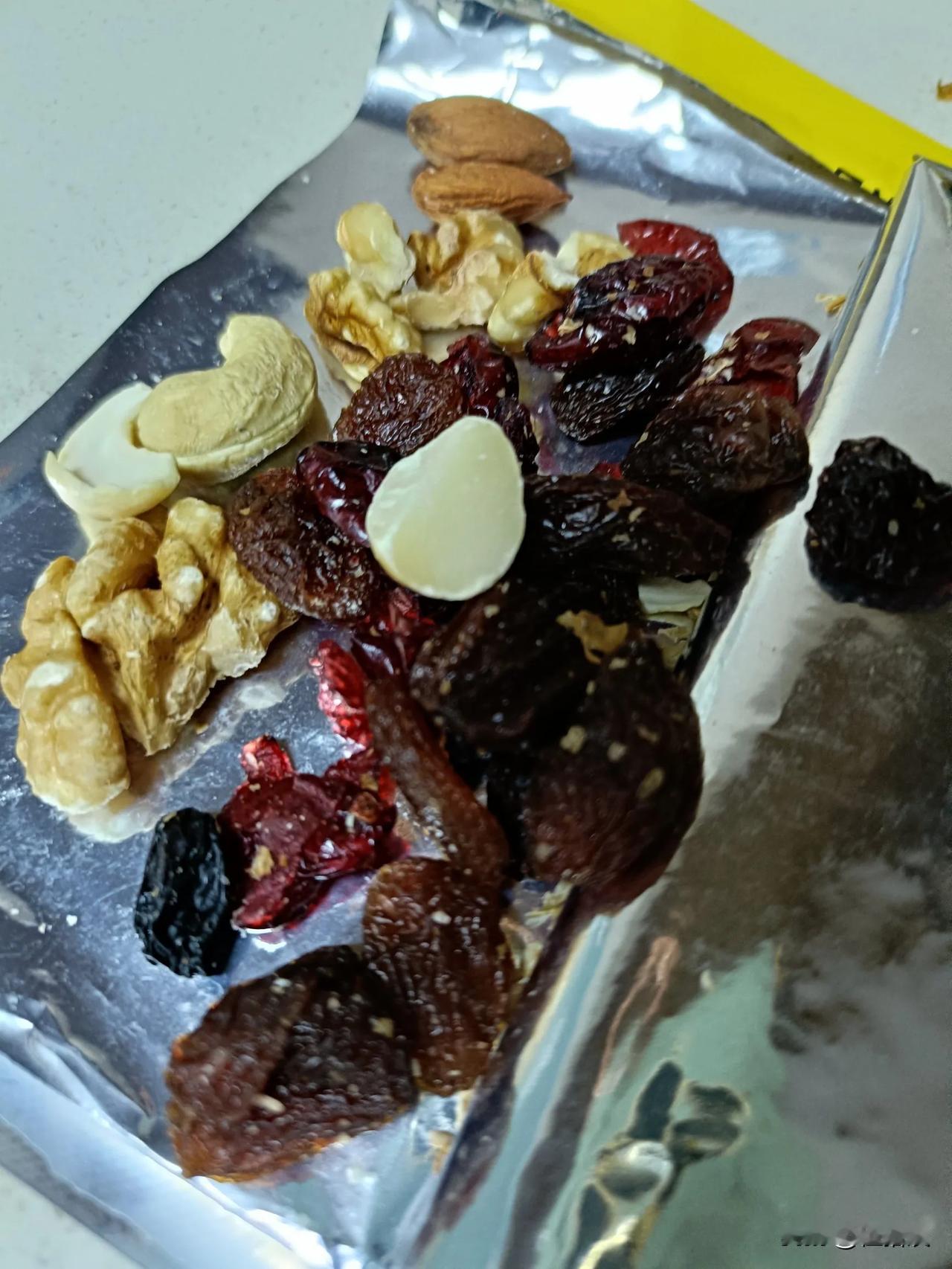 有谁买的每日坚果,坚果这么少的,夏威夷果只有半粒,我也是头一次遇见[捂脸] 第一包的时候,以为是碰巧,后面每一包都是半粒,原来厂家是故意的。[抠鼻] 两粒和葡萄干大小的巴旦木,一粒半的腰果,不满一颗的核桃仁,半粒夏威夷果,还有就是几种葡萄干了。 就这,价格不便宜! 以后这个牌子拉进黑名单了!