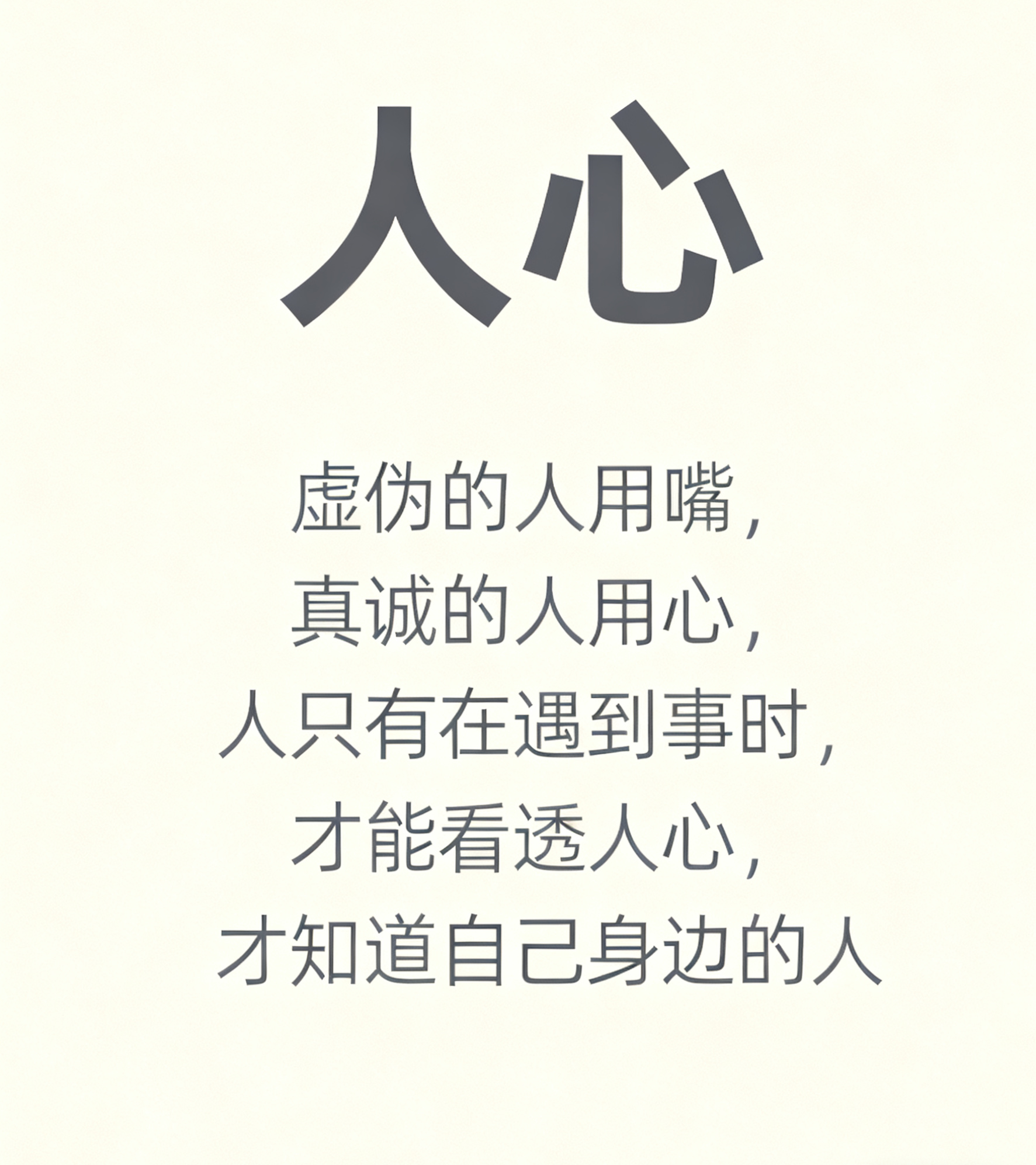 人心 虚伪的人用嘴 真诚的人用心 人只有在遇到事时 才能看透人心 才知道自己身边的人 世上真诚最可贵 世上复杂是人心 真诚打动他人 要看透人心 真诚为人 真诚 识破人心的技巧 浅说人心