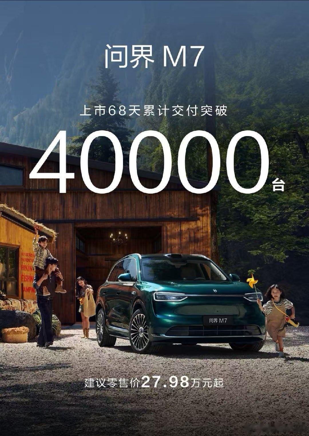 新问界M7,上市68天,交付4万台。紧随着两个大哥M9和M8之后,M7也卡死了30万价位的位置。华为这刀法太精准了,连着起飞啊,你们定一台了吗?
