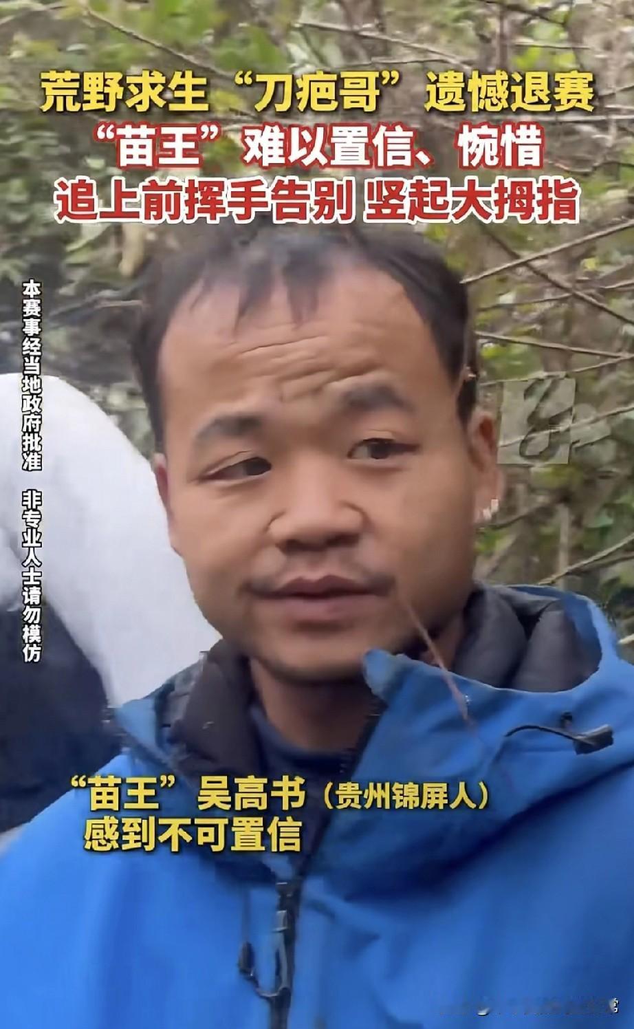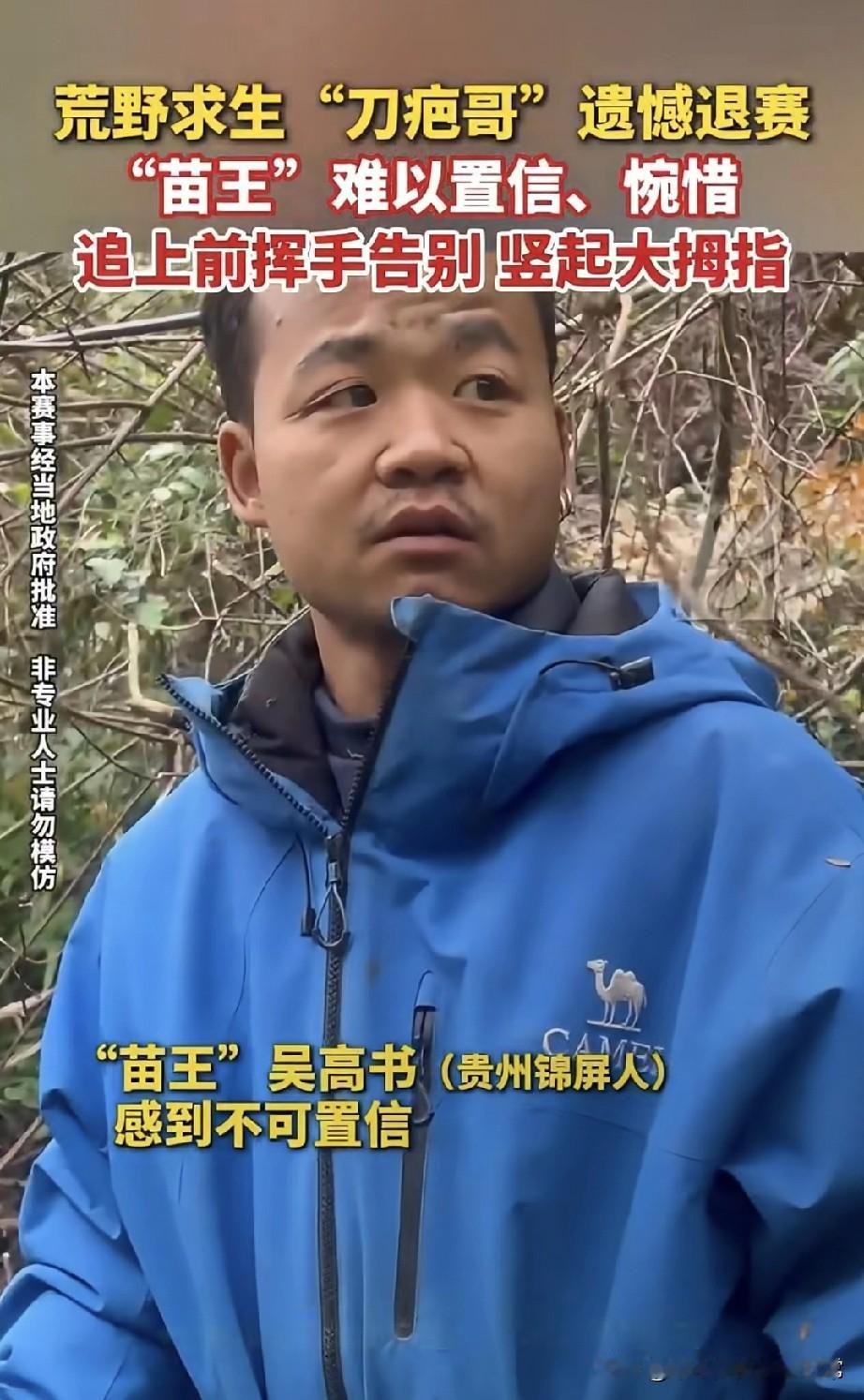 “刀疤哥”突然退赛,苗王却失落了 今天七星山荒野求生决赛第9天,83号“刀疤哥”杨小勇突然退赛,把所有人干懵了。 镜头里“苗王”那脸,从“不可能吧”到肉眼可见的失落——这可是他盯了9天的最强对手啊!刚还在比生火速度,转头人没了? 他追出去好远,一边挥手一边竖大拇指,那表情像极了咱们打游戏遇着大神组队,刚加载完人离线了。 荒野求生拼的是耐力,可“刀疤哥”到底是身体扛不住,还是有别的隐情?要我说,真有实力的人不该在决赛临门一脚撤,你们觉得他退赛是可惜,还是另有打算?