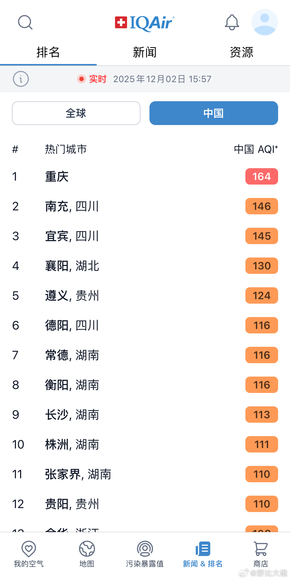 重庆今天的空气质量太窒息了,全球第四冬天真的太恼火了……大家戴好口罩😷