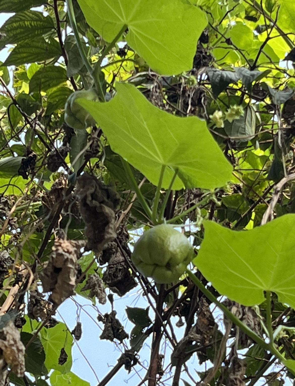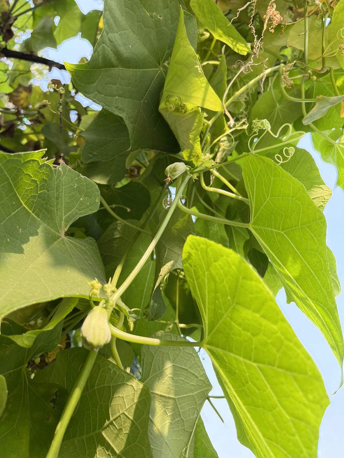 种下一棵苗,爬得满墙藤,结下一堆瓜,吃都吃伤了! 四川人叫这个瓜“胡儿瓜”,根系相当发达,喜水,开绿底浅黄的花,结拳头样的果,关键是超级能结果,一颗苗可以接上百个果,一嘟噜,一嘟噜地挂起来。 嫩的瓜可以切丝炒,可以切块红烧,味道有点怪异回甜,比较老的瓜,需要削去外皮,掏出里面的白芯,再炒或者煮。 小时候吃太多,长大了再不想吃了