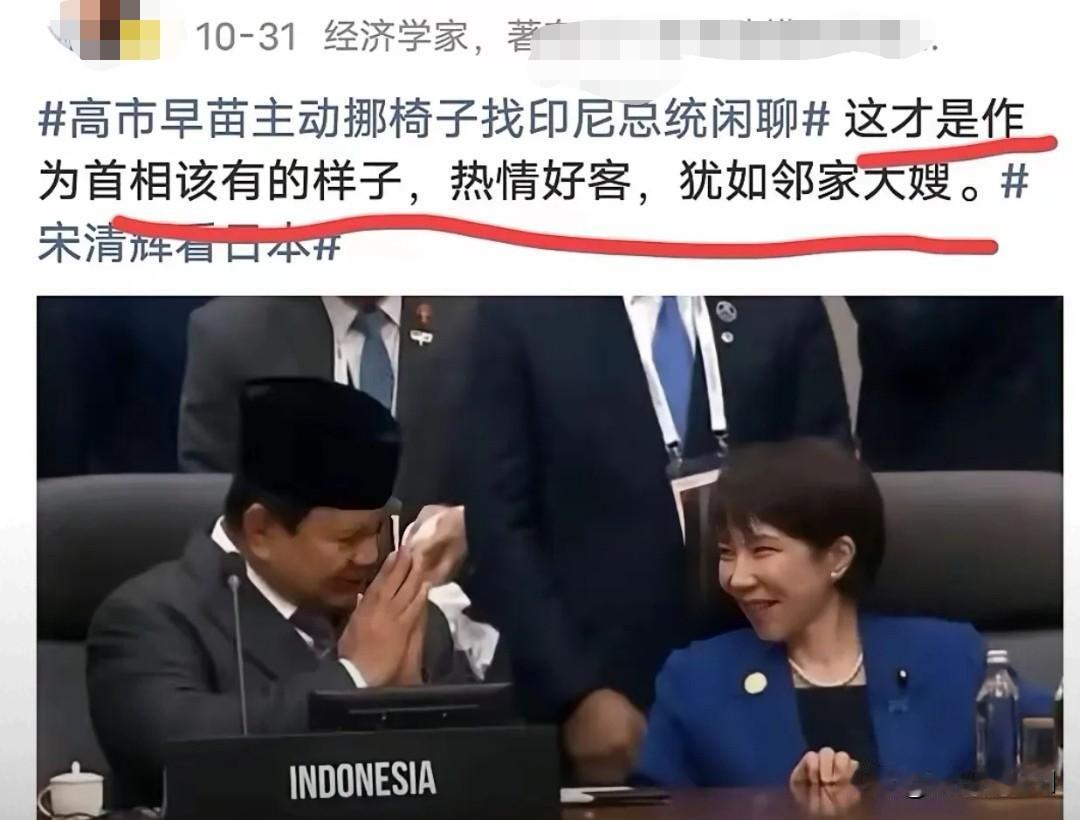 某专家猛夸日本政客"邻家大妈",网友直接炸锅。 这位被捧上天的日本女政客,历史黑料一箩筐——拜鬼、否认侵略、军国主义复辟一样没落下。专家却把她说成热情好客的慈祥大妈,评论区立马翻车。 眼尖的网友扒出她开会时皮笑肉不笑的做派,连装样子都透着股傲慢劲儿。就这还能吹成"亲民典范",难怪被喷是"选择性眼瞎"。 历史伤疤还没结痂呢,有人就急着给刽子手涂脂抹粉。要我说,夸人可以,但对着靖国神社常客喊"高风亮节",这马屁拍得忒没底线。 现在这年头,洗白军国主义都开始走"邻家人设"路线了?各位见过这么瘆人的"大妈"吗?