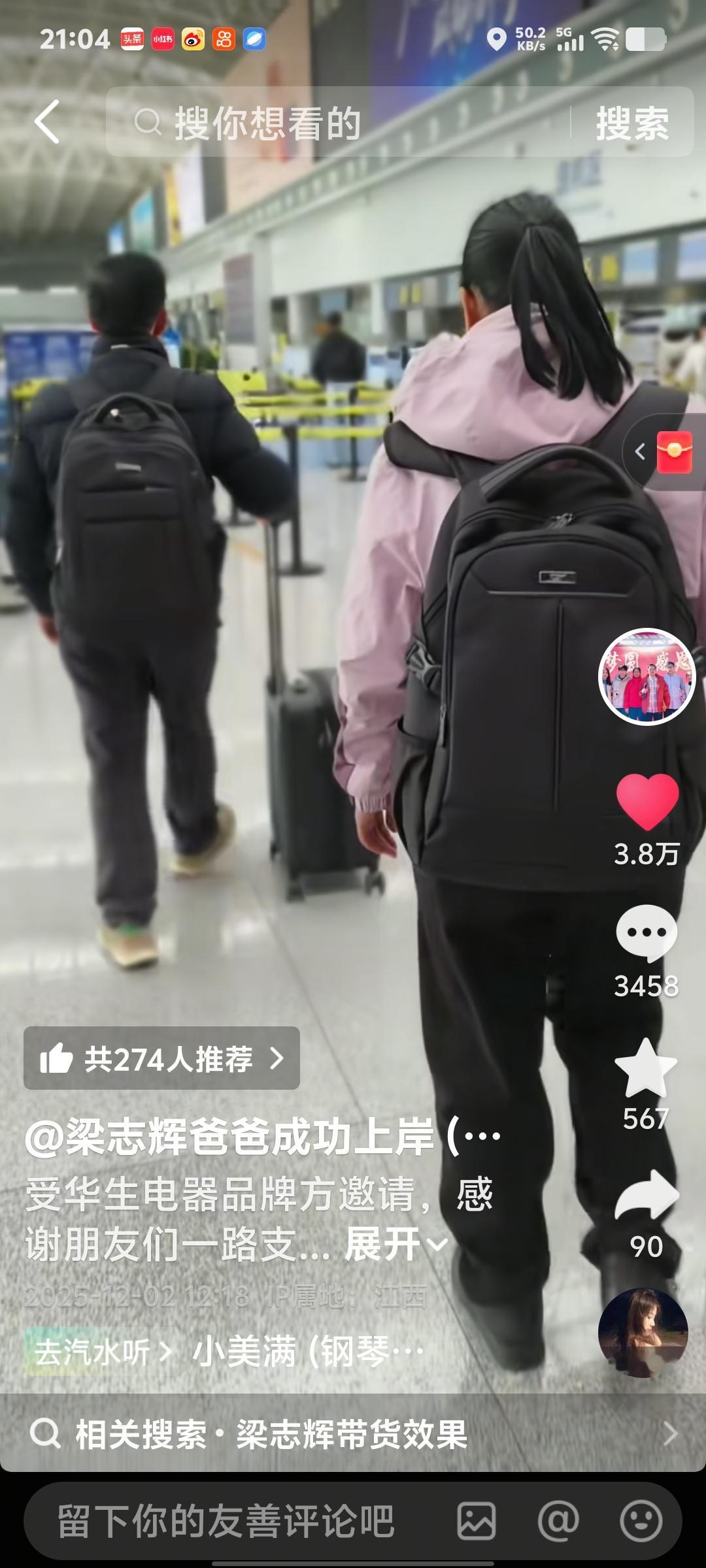 认亲后干劲拉满!梁志辉爸妈背包推箱闯山东带货,30年家徒四壁终迎曙光,全网盼一家三口合体赚幸福~ 梁志辉的爸爸妈妈又踏上带货之路。去山东了,4号直播带货。现在两口子走起路来,浑身都有使不完的劲。 两个人面带笑容。拍视频神态自然,亲切。身上背着包,手里推着行李箱。 因为儿子已经认回家了。悬着的一颗心落了地。这个大团圆的结局,双方都非常满意。 前些日子直播带货赚的钱。欢迎儿子的团圆宴上应该也花的差不多了。 对于这老两口子直播带货赚钱,评论区都是支持的声音。为了找儿子这30年过的家徒四壁。 弟弟读书的钱。用的助学贷款都是工作之后自己还的。网友文也都希望老两口能多赚些钱。 把以后的生活过好。还有不少人反应。他家门口的路实在太窄了,两个人并肩都走不过去。 多赚点钱,在城里买个大房子。过上更好的生活。也有不少人让梁志辉回来跟爸爸妈妈一起带货。