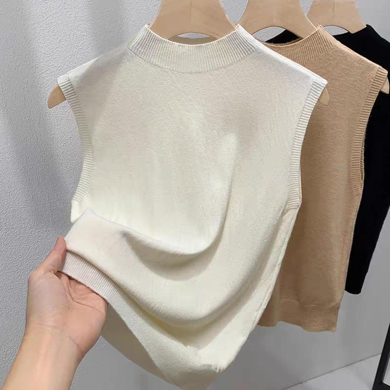 最近买了两件这样的无袖半高领的针织打底,外面搭开衫太舒服了。半高领脖子不冷还好看百搭,比普通材质的半高领打底更有质感,无袖避免了胳膊太臃肿,简直是相见恨晚。[心]