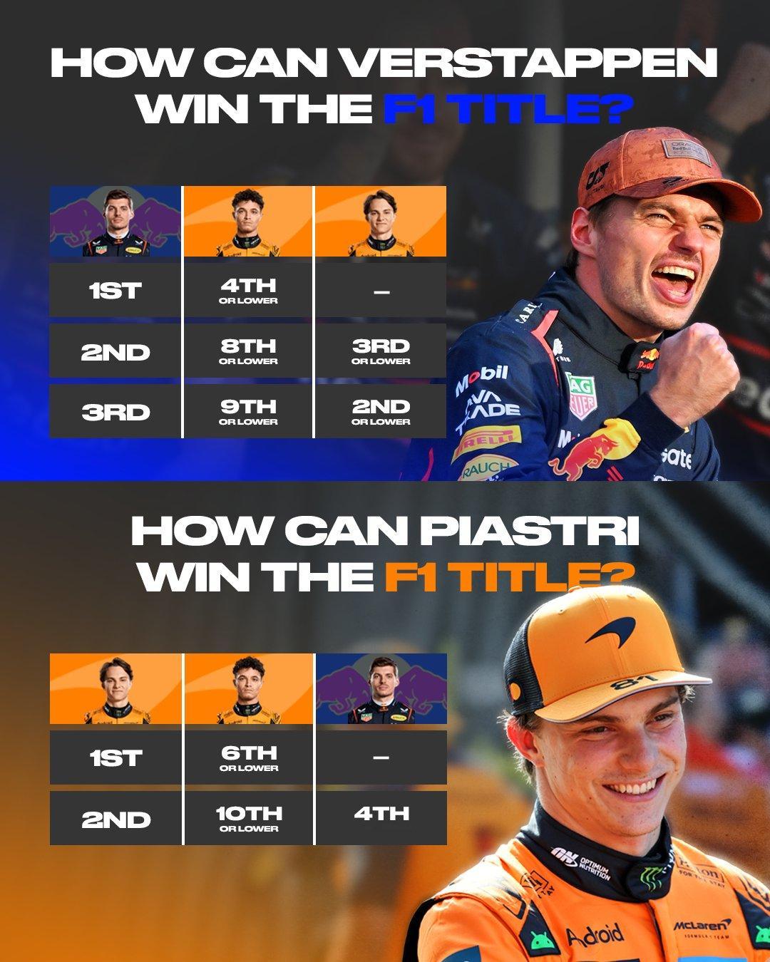 f1 本周末的阿布扎比收官战,三位车手想要赢得车手世界冠军所需的条件:👇(图:The Race)2025f1阿布扎比大奖赛
