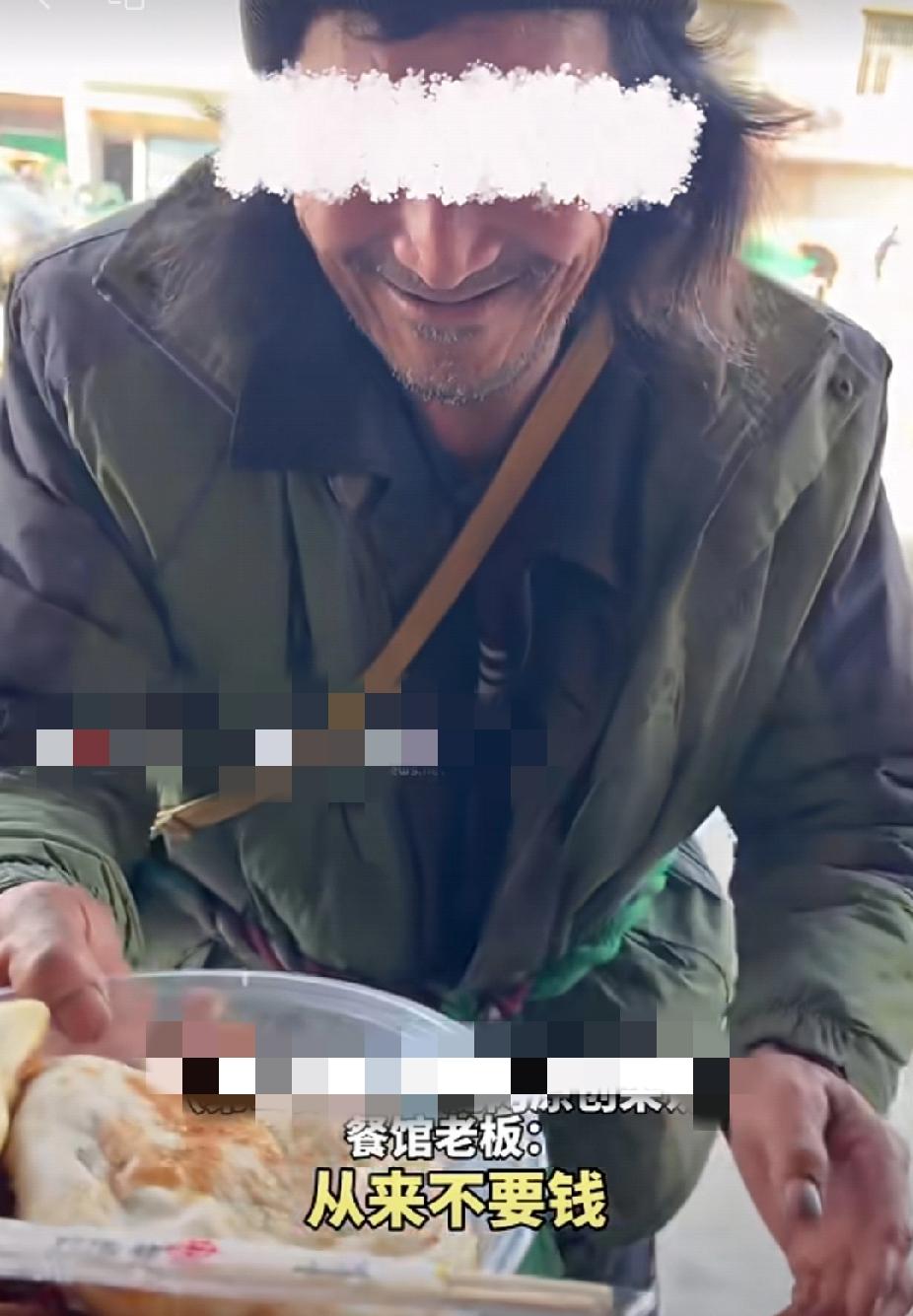 “你这几天到哪里去了,好几天没见你了!”12月2日,安徽一餐馆老板生气地问一位乞讨的老人,而老人就站在门前微微笑着不说话。 餐馆老板说,自己认识这位乞讨的老人好几年了,因为老人总是不定时地来自己这里要吃的,不知不觉间自己心里便形成了对老人的挂念。 老人与其他乞讨者不同,他每次来餐馆,都是掀起门帘站在门口,从不肯走进店里。而老板每次都会不吝啬地像对待正常顾客一样,给老人做一份饭。 老人每次来讨饭,都只是讨饭,给他钱也不要,只要一口饭。 老人这次一消失好久没有来要吃的,餐馆老板心里不免泛起嘀咕,担心老人的生活。老人出现时,餐馆老板心里乐开了花,心里堵着的一块大石头也终于落下了。 “下次想吃再来啊!”餐馆老板像叮嘱一个孩子一样叮嘱老人,他希望老人不要挨饿,希望老人平安,他期待着下次老人再来到自己店里讨饭! 或许,这就是人性的善良,让乞讨老人与餐馆老板之间形成了一条无形的纽带,让他们挂念着彼此。 善良