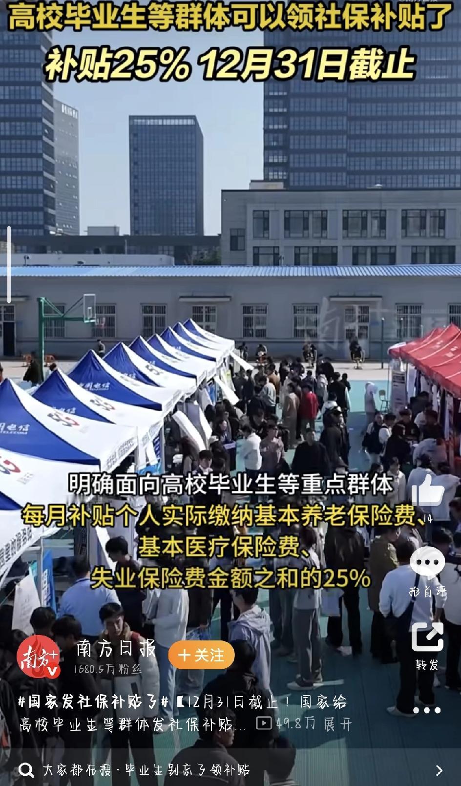 最近广东的打工人、高校毕业生们注意啦!一份实打实的社保补贴福利已上线——广州市人社局发布了广东省2025年重点行业个人社保补贴政策,符合条件的人每月能领到个人缴纳“三险”金额的25%,相当于社保缴费直接打七五折,妥妥减轻生活压力! 想拿到这份补贴,先搞清楚两个核心条件:所在企业和个人都得达标。企业方面,必须是在广东登记注册的中小微企业,像制造业、批发零售、住宿餐饮、教育、卫生社工、文体娱乐这些行业都属于重点领域,不过个体工商户这类非企业性质的单位可不算哦。个人得是三大重点群体之一:2025年毕业的高校毕业生(包括全日制本专科、硕博,非全日制硕博也在内),或是2023年及以后毕业、还没就业的离校生(技工院校高级工班、预备技师班、技师班,还有特殊教育院校职业教育类毕业生,都能参照高校毕业生享受福利);2025年新就业,且之前在广东办理过失业登记、连续失业满180天的人;还有被农业农村部门认定的防止返贫致贫监测对象,比如脱贫不稳定户、边缘易致贫户等。另外,企业得和员工签订一年以上劳动合同,2025年按规定缴纳养老、医疗、失业这三项社保才行。 补贴力度很实在,每月补贴金额=个人实际缴纳“三险”总金额×25%。举个例子,要是你每个月个人要缴800元社保,就能领到200元补贴,一年最多能领12个月,相当于多了一笔小工资!补贴是先缴后补,从企业实际为你缴纳社保的当月开始算,缴几个月就能领几个月,同一人累计补贴最长不超过12个月。 申请方式超方便,全程线上办理,不用跑线下窗口。符合条件的小伙伴,让所在企业在2025年12月31日前,登录“广东公共就业服务云平台”提交申请就行。需要准备的材料也不复杂:你的身份证、和企业签订的劳动合同、基本医疗保险费缴费清单,还有社保卡账号信息。提交后,人社部门会在20个工作日内完成审核,审核通过后,补贴会直接打到你的社保卡里,效率超高! 还有几个小提醒要记牢:如果已经以创业者身份领过创业资助或租金补贴,在创办的单位注销前,不能享受这份社保补贴;要是2025年底前已经提交了首次申请,后续的补贴最晚能在2026年12月31日前申请。现在政策已经明确,符合条件的别犹豫,赶紧提醒所在企业帮忙准备材料申请,别错过这份政策红利! 这项政策既帮企业稳住了员工,又给重点群体减轻了社保负担,真是双赢的好福利。有疑问的话,直接咨询当地人社部门就行,赶紧核对条件,抓紧时间申请吧! 来源:南京日报