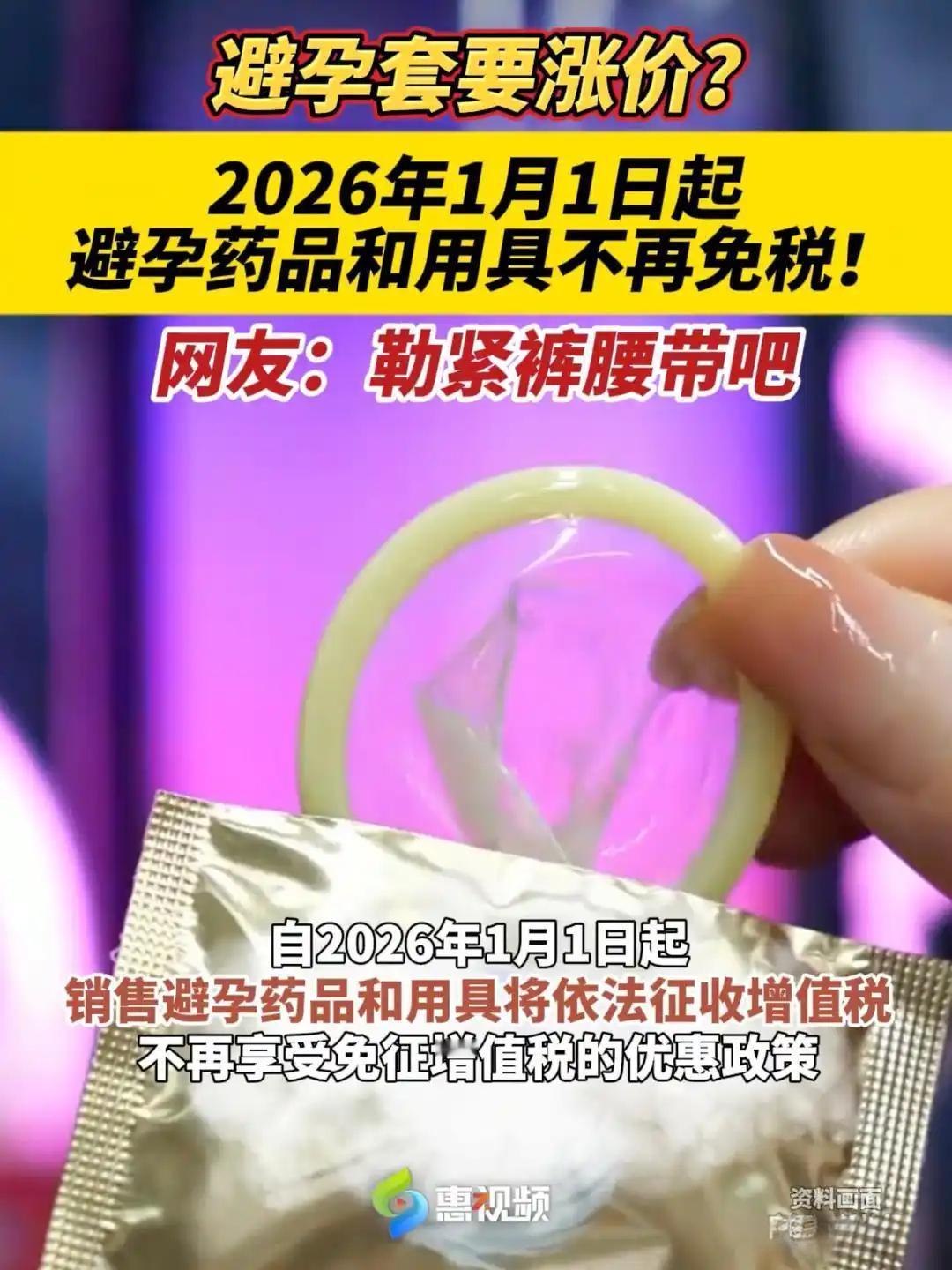 为什么避孕药品和用具要收税了。又是哪个专家出的主意?看似提高避孕成本提高生育率,那有没有可能降低夫妻性生活次数,从而影响夫妻亲密关系,然后提高离婚率呢? 这话问得扎心,却戳中了很多普通夫妻的顾虑。不是大家胡思乱想,而是这项政策调整来得突然,背后的逻辑总让人觉得有点想当然。2026年1月1日起,实行了32年的避孕药品和用具免征增值税政策要取消了,13%的税率会直接叠加到终端价格上,这意味着以后买避孕套、口服避孕药都要多花钱了。 政策调整的理由很明确,现在人口政策从“控增长”转向“促生育”,取消免税能把每年约12亿元的税收收入,投向育儿补贴、托育服务这些领域。听起来是资源优化配置,可有没有想过,避孕这件事从来不是单纯的“阻碍生育”,而是夫妻规划生活的必要选择。我身边的朋友小两口,结婚三年没要孩子,不是不想生,是房贷每月八千多,两人工资刚够覆盖开支和赡养老人,根本没底气迎接新生命。他们一直用短效避孕药,原价35元一盒,加税后涨到39元左右,一年多花52元,看似不多,可叠加房租、水电、通勤成本,每一笔额外开支都让他们觉得压力山大。 更让人担心的是心理层面的影响。夫妻亲密关系本就需要无负担的氛围,现在每次准备避孕,都要下意识想到“这又是一笔税钱”,这种隐性压力会不会悄悄冲淡兴致?有妇产科医生就说,夫妻对避孕的顾虑会直接影响亲密体验,真正能提升体验的,是无后顾之忧的规划,而不是用税收增加心理负担 。那些说“涨幅不大,影响有限”的专家,可能没体会过普通家庭的精打细算——不是付不起这几块钱,是这种“被政策引导”的感觉不舒服,仿佛自己的生育选择被强行干预。 而且政策忽略了一个关键事实:避孕从来不是某一方的事,在我国,女性长期承担着主要避孕责任,口服药、上环、皮埋这些方式,本就给女性身体带来了一定负担。现在避孕成本上涨,会不会让一些家庭为了省钱,减少避孕措施的使用?可意外怀孕的代价更大,人工流产不仅伤害女性健康,还可能引发夫妻矛盾,这反而会给亲密关系埋下隐患。更讽刺的是,真正影响生育意愿的,是住房、教育、托育这些大头支出,一个新生儿三年能领10800元补贴,确实比避孕成本增加的几十块多得多,但这笔补贴能抵消育儿的长期压力吗?答案恐怕是否定的。 有人说避孕用品需求弹性低,涨价不会改变消费选择,可这只看到了“必须避孕”的群体,没看到那些可生可生、处于观望状态的夫妻。他们可能因为避孕成本上升,加上对育儿压力的恐惧,反而更不敢轻易尝试生育。还有低收入群体和高校学生,对价格本就敏感,虽然社区卫生服务中心还会免费提供基础避孕用品,但免费渠道的种类有限,很多人还是会选择自己习惯的品牌,这笔额外开支对他们来说,可能就是压垮骆驼的最后一根稻草。 政策的初衷是好的,鼓励生育、优化公共资源配置,没人会反对。可问题在于,用提高避孕成本来引导生育,是不是太简单粗暴了?生育意愿的提升,需要的是降低养育成本、完善职场母婴权益、增加普惠托育资源,这些实打实的支持,而不是在夫妻的私密生活里加一道“税”。避孕是夫妻共同的责任,也是对生活的理性规划,强行用税收杠杆干预,不仅可能达不到预期效果,还可能让夫妻在柴米油盐的压力之外,又多了一层不必要的隔阂。 真正的生育友好,应该是让夫妻在没有经济压力、没有心理负担的情况下,自主选择什么时候生孩子、生几个。而不是用增加避孕成本的方式,倒逼他们做出选择。那些制定政策的专家,是不是该多走进普通家庭,听听他们的真实想法?各位读者你们怎么看?欢迎在评论区讨论。