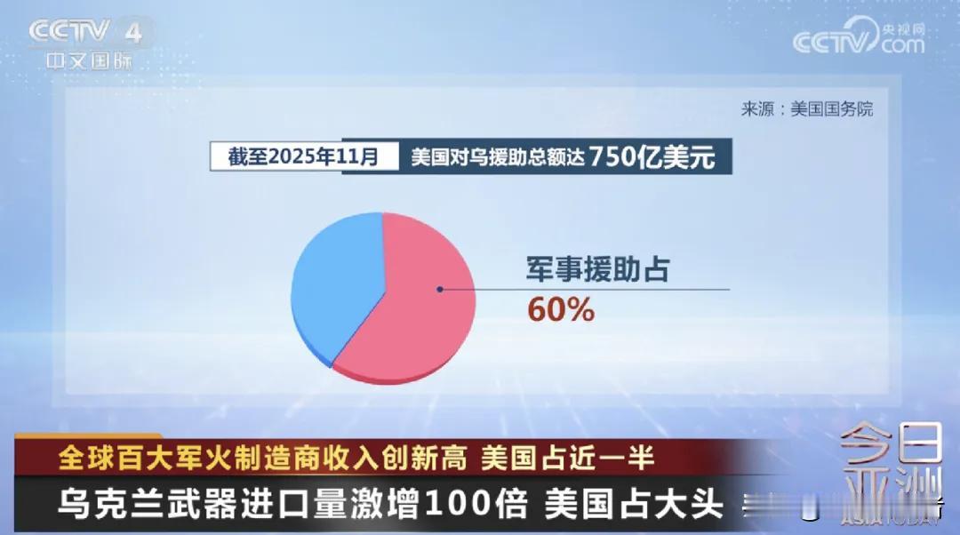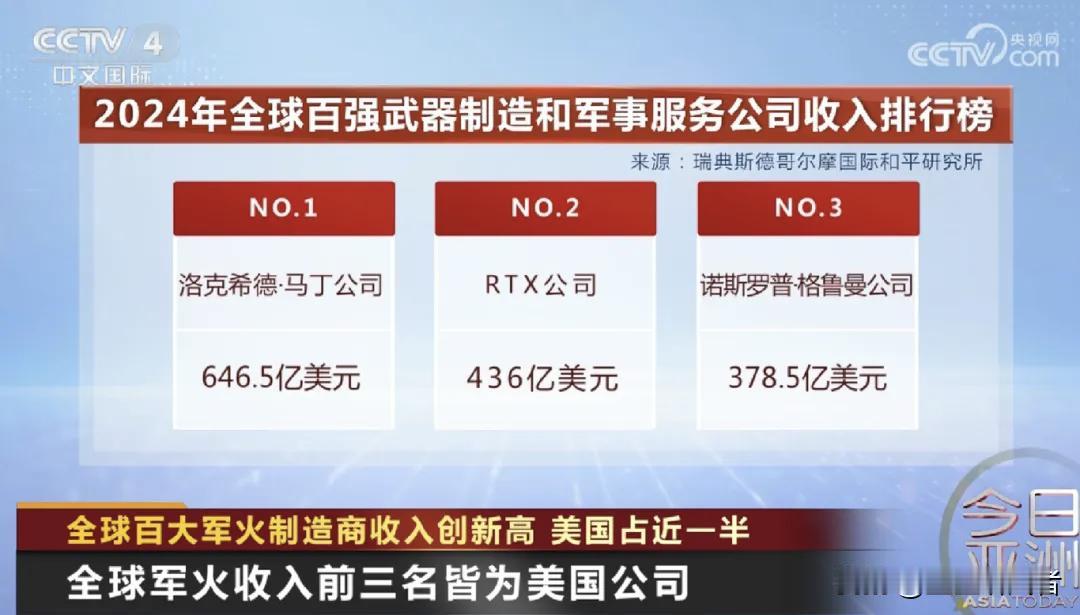 美国企业独吞其中3340亿美元,夺冠全球 2025年12月1日,瑞典斯德哥尔摩国际和平研究所发布的最新报告撕下了和平的假面——全球百大军火商在2024年狂揽6790亿美元收入,而美国企业独吞其中3340亿美元,近乎一半。这份血腥的“财富榜”前三甲清一色是美国军工巨头:洛克希德·马丁、RTX和诺斯罗普·格鲁曼。更令人警惕的是,马斯克的SpaceX首次杀入百强,其武器销售额在一年内翻倍,高达18亿美元。 报告毫不避讳地指出,俄乌冲突和加沙战火是军火贸易暴涨的直接推手。其中乌克兰武器进口量在四年间暴增100倍,仅美国就包办了45%的份额。截至2025年11月,美国对乌军事援助总额已突破450亿美元——这种靠战争滋养的“繁荣”,正在掏空美国自身的武器库存,迫使欧洲各国疯狂补货。 五角大楼已在11月初公开转向“战时采购模式”。国防部长赫格塞思宣称要以“速度为核心”重构军备采购体系,这无异于重启二战时期的军火生产机器。在AI军事化方面,美军正加速部署如“牛蛙”智能机枪等自主杀人武器,并与OpenAI等科技公司深度绑定。 个人认为,这套“制造危机-刺激需求-扩大生产”的军工复合体循环已然失控。当美国军火商成为地缘冲突的最大赢家,世界和平已成为最廉价的牺牲品。各国被迫卷入的军备竞赛,只会让人类文明在军事技术的悬崖边越滑越远。