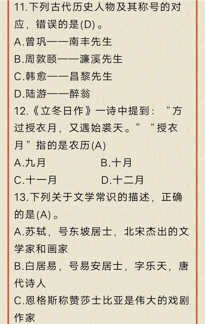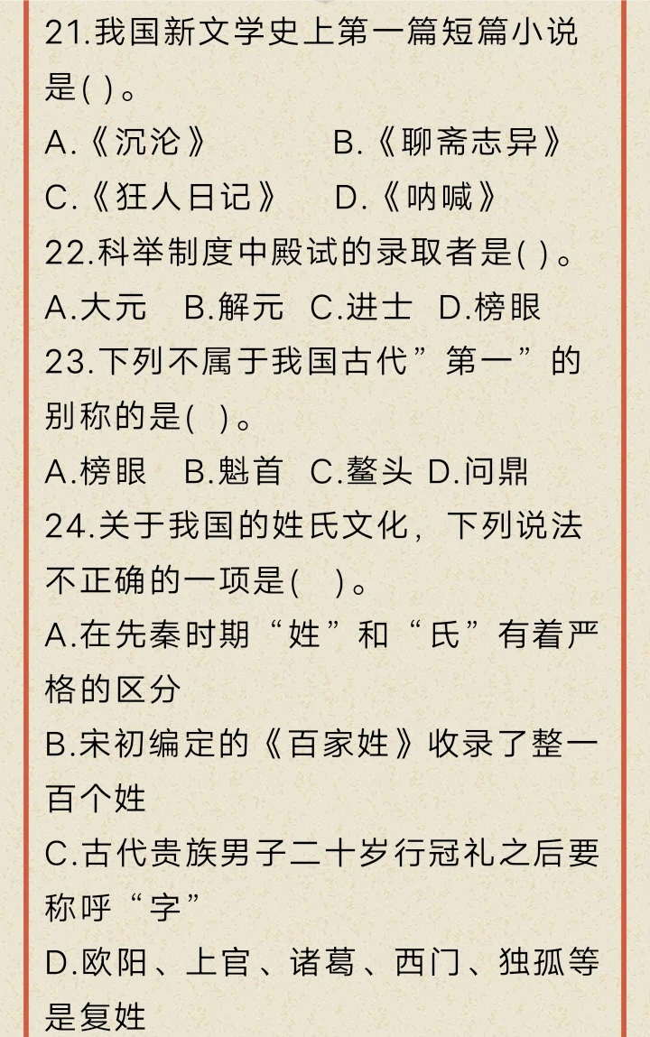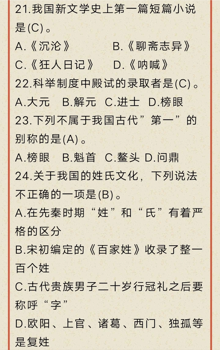 文化常识打卡