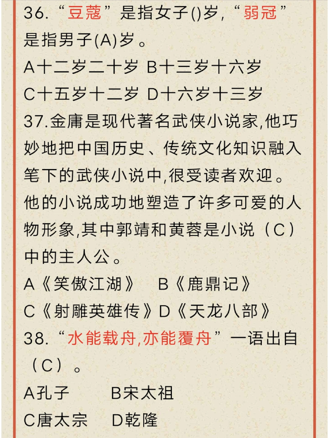 文化常识17,好的题,如同无色无味的清水