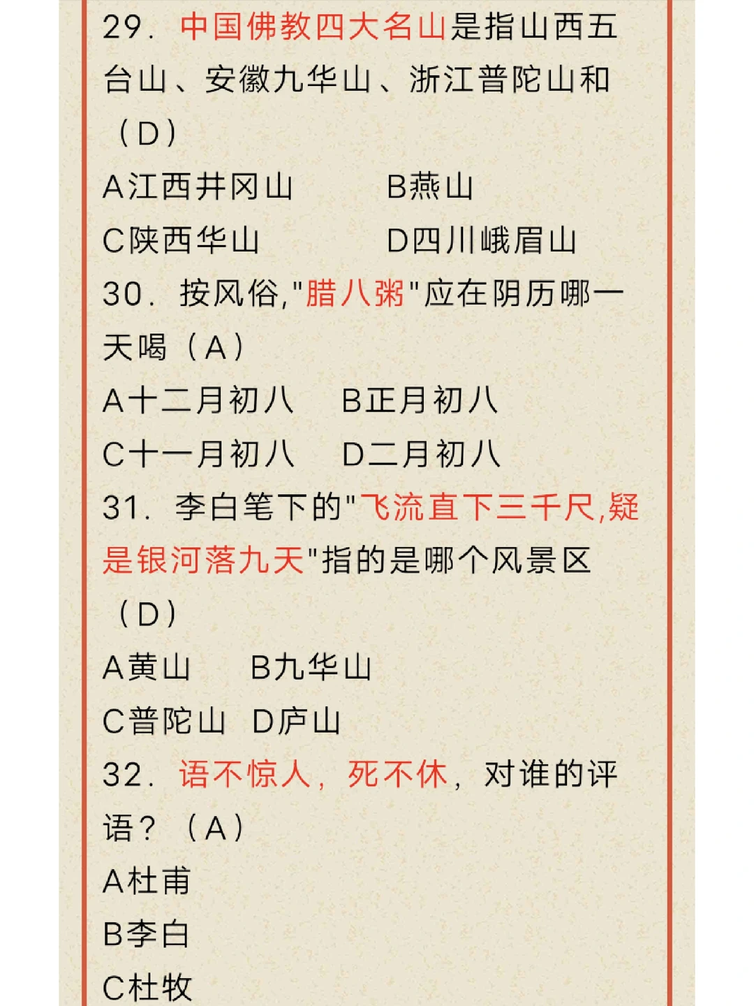 文化常识打卡