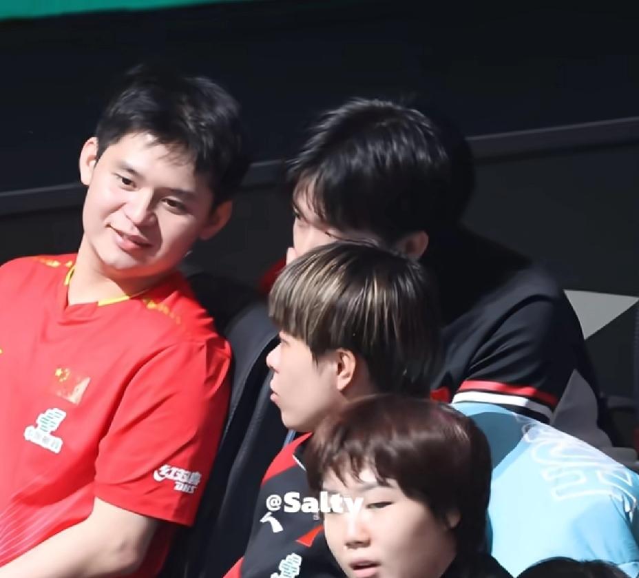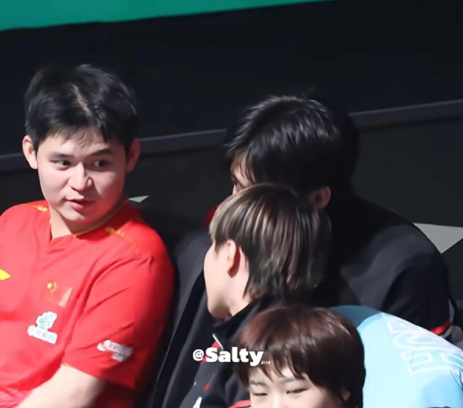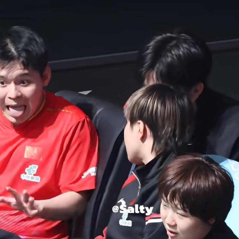 这“哥仨”聊啥呢? 聊得那叫个热火朝天, 小石头的表情是真丰富。 今年的混团真是好开心, 有比赛看比赛, 没有比赛看他们聊天。 看场边这“哥仨”聊得热火朝天, 要是再来上几包瓜子, 估计能聊到天亮。 大迪跟谁坐一起都是姐弟, 怪不得都叫她“迪哥”, 人缘真好跟谁都聊得来。 也不知道他们在聊啥, 小石头说话表情真是丰富, 还伸了个小舌头, 看来他们在聊好玩的事情。 好喜欢这样的氛围, 这才是队友之间该有的模样。 比赛时候严肃严谨, 没比赛时嘻嘻哈哈。 (图片源自于水印)