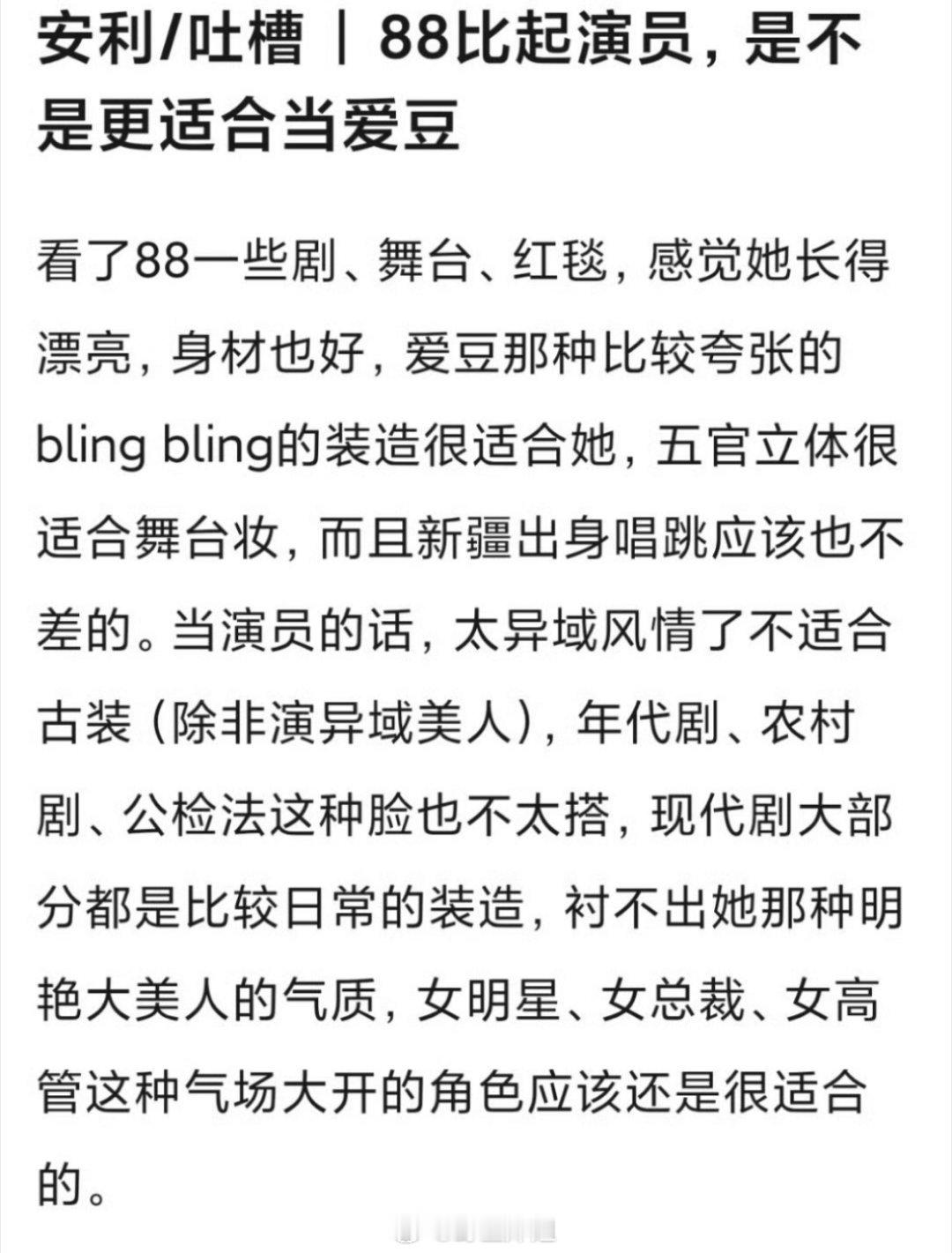 网友热议感觉迪丽热巴比起去当演员,反而去当爱豆更加适合她啊,长得漂亮身材也好,五官立体很适合舞台妆造,经常去走走红毯,是真的很好,你咋看呢?