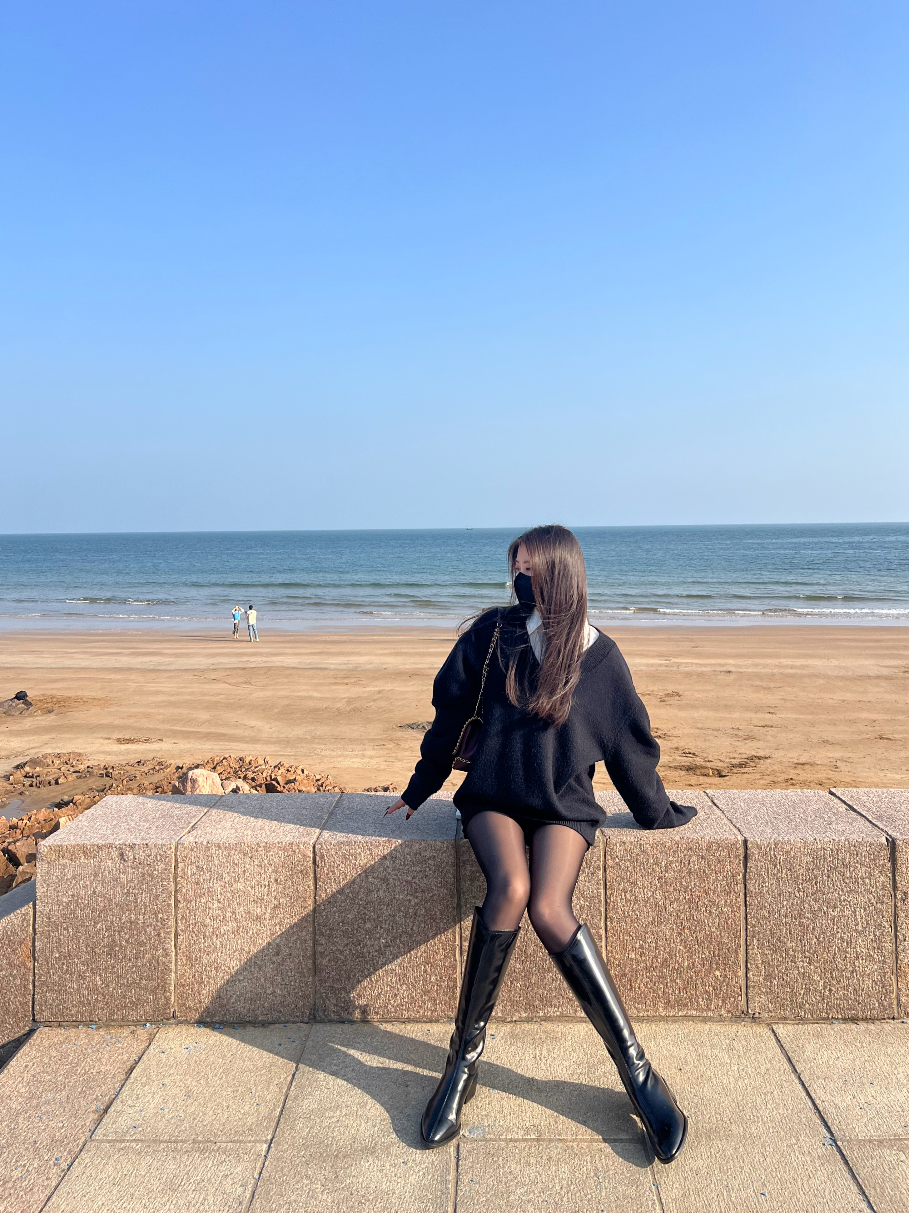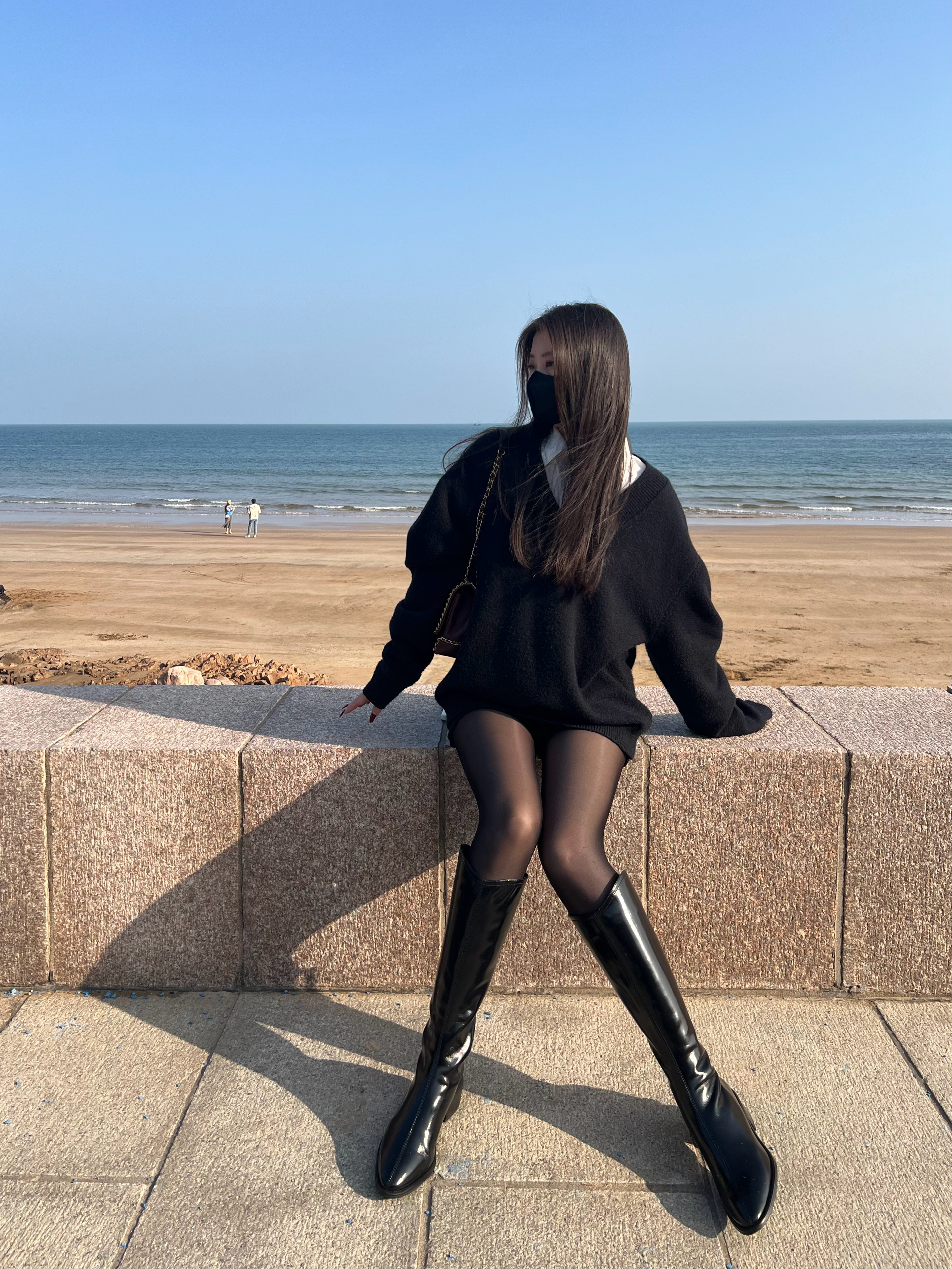 violetvivianootd今天穿什么 冬季去看海 Wolford和骑士靴