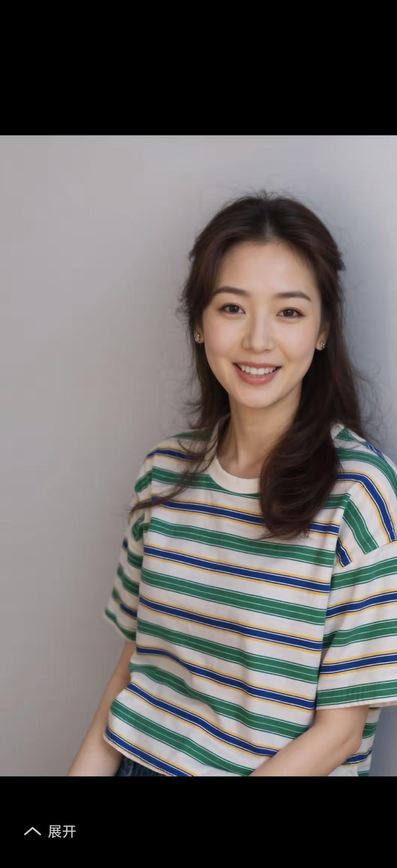 阳光下的甜美女孩,花衣与绿树相映成趣