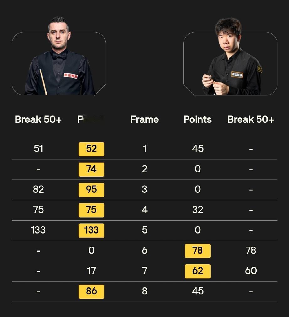 凯伦·威尔逊 3-4 埃利奥特·斯来塞 巴里·霍金斯 4-3 大卫·利利 周跃龙 6-4 罗尼·奥沙利文 马克·塞尔比 6-2 雷佩凡 2025斯诺克英锦赛正赛首轮,12位参赛的中国球员的比赛都结束了,7人晋级16强,创造了无与伦比的历史新纪录。 特别值得一提的是周跃龙,6-4战胜斯诺克历史第一人打出一杆破百五杆50+的罗尼奥沙利文!结束交手七连败的尴尬,昂首晋级16强。赵心童、丁俊晖、吴宜泽、斯佳辉、庞俊旭、张安达也顺利晋级16强! 首轮最后两场比赛还在进行中,凯伦·威尔逊落后于斯来塞,巴里·霍金斯领先大卫·利利。