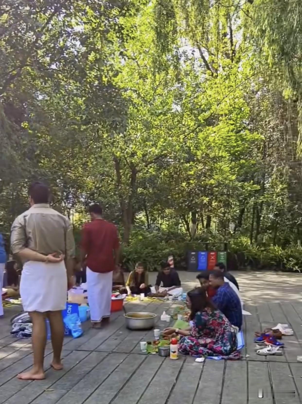 一段旧视频再次引爆争议:成都南郊公园内,印度群体草坪聚餐后留下满地碗筷、咖喱汤渍,保安旁观未干预,周边游客避之不及,这事到底该咋看? 公园本是公共净土,却因跨文化行为差异变了味。 有人指责群体缺乏公德,也有人认为是文化习俗差异,可核心矛盾从来不是“哪国人”,而是“是否守规矩”——我国《城市公园管理条例》明确规定,不得在公园内随意丢弃垃圾、污染环境,这是所有访客的共同底线。 公共空间的规矩,不分国籍与文化,个别群体的不当行为,不能代表整个族群,却暴露出公园管理的漏洞。 保安的“不敢管”,实则是跨文化管理的权责模糊,既怕引发冲突,又缺乏明确处置流程,最终让公共利益受了损。 外籍游客入乡随俗是基本礼仪,管理方严格执法是应尽职责。 放任垃圾乱堆,既辜负了环卫工人的付出,也凉了本地市民的心。 “包容不是纵容,尊重需要双向奔赴”,外籍人士享受城市便利的同时,也需遵守本地规则;公园管理既要尊重文化差异,更要守住公共底线。 管好公共空间,才能守住城市温度,旧视频的热议,实则是对城市治理的提醒:完善跨文化管理细则,明确违规处置标准,才能让包容与规则并行,让公园回归舒适净土。
