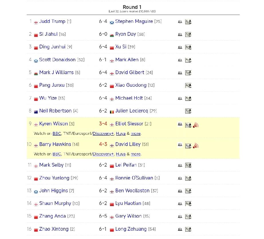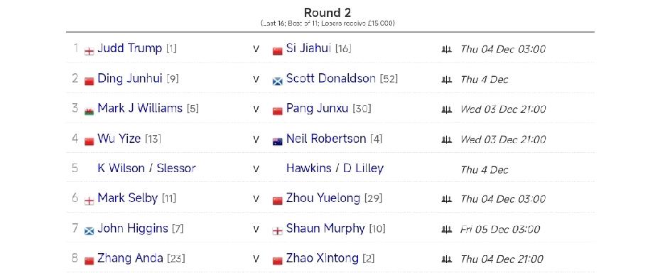 周跃龙淘汰罗尼·奥沙利文 英锦赛第二轮对阵马克·塞尔比! 12人出战,7人晋级1