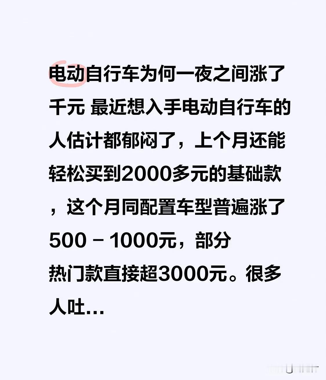 电动自行车为何一夜之间涨了千元电动自行车为何一夜之间涨了千元 最近想入手电动自