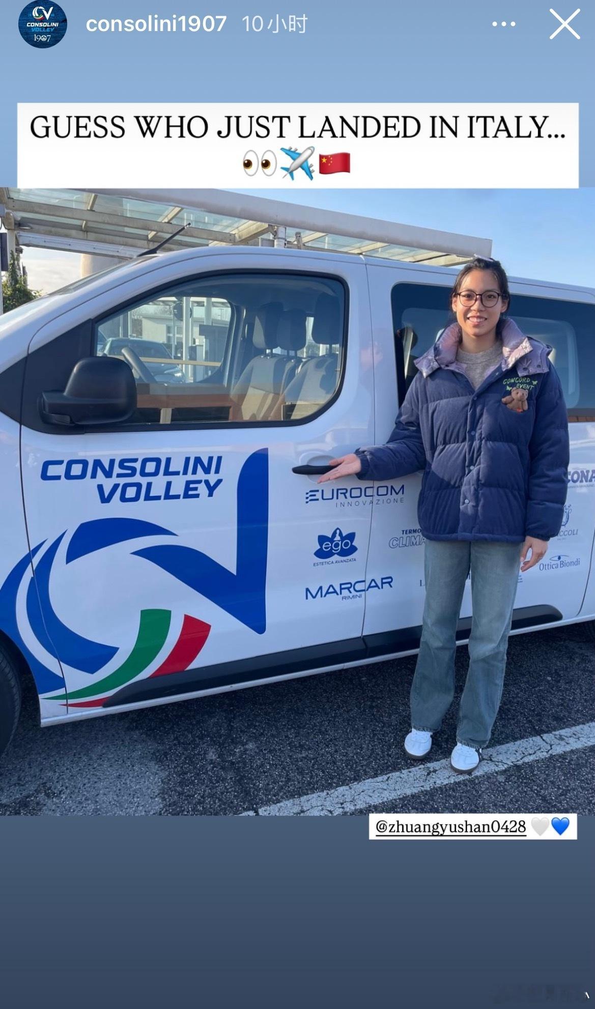 【庄宇珊抵达意大利】意甲圣乔瓦尼俱乐部官方ins:庄宇珊到啦,期待意甲好好表现世界女排新闻庄宇珊留洋第一季