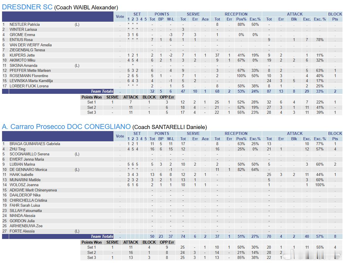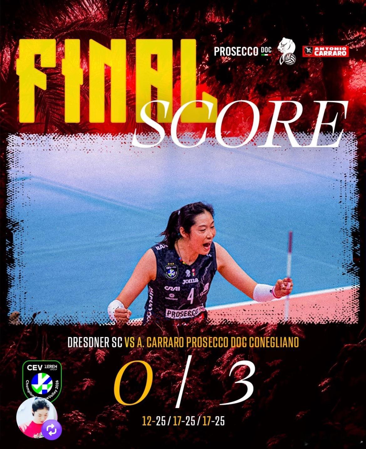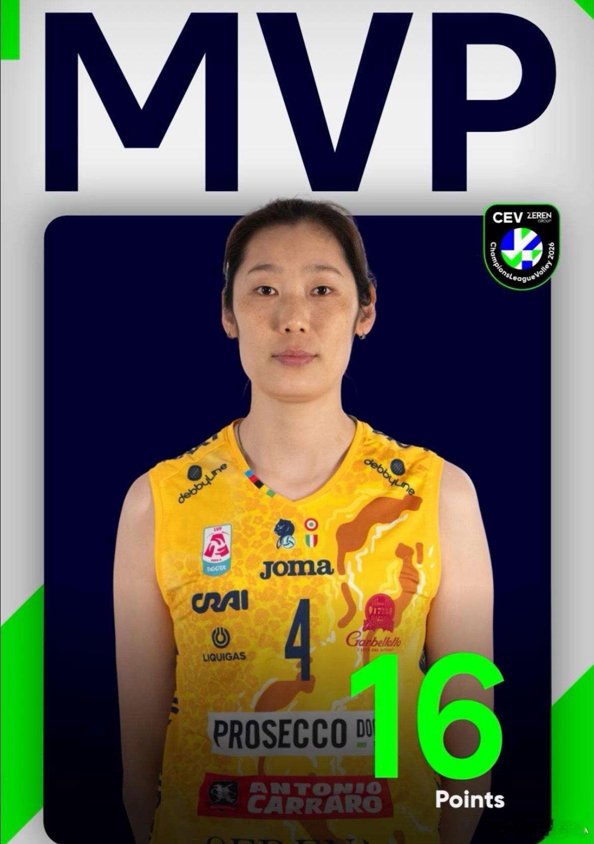 【科内3-0德累斯顿,朱婷16分MVP】女排欧冠 正赛第二轮,🇮🇹科内利亚诺客场3-0🇩🇪德累斯顿,朱婷荣膺本场MVP朱婷mvp 拿到16分(21扣12中1失误4拦16一传)朱婷留洋第七季