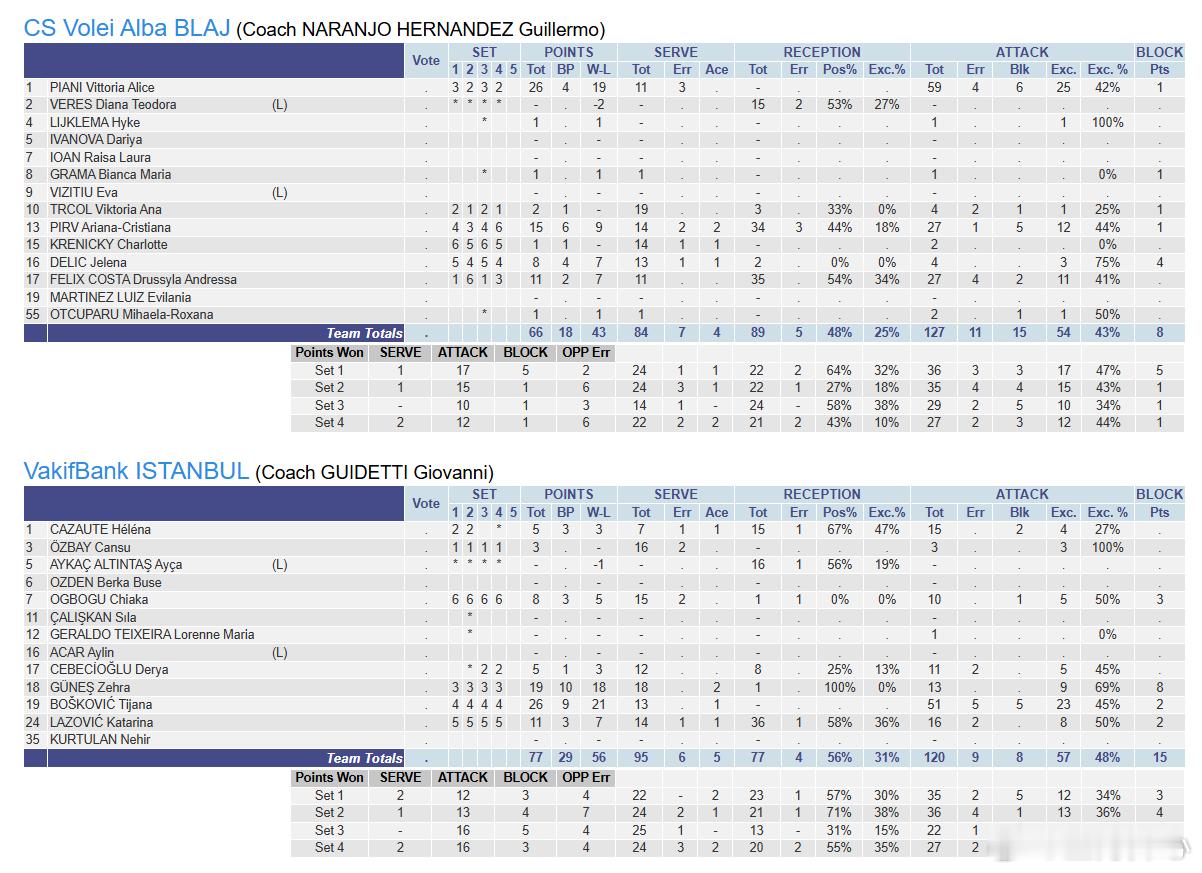 【银行3-1布拉日,博斯科维奇MVP】女排欧冠 正赛第二轮,瓦基弗银行客场3-1布拉日,马尔科娃保险起见休战21-25/25-23/25-14/25-21;博斯科维奇MVP26分(51扣23中5失误5被拦2拦1发)泽赫拉19分(13扣9中8拦1发)拉佐维奇11分(16扣8中2失误2拦1发36一传1失误)奥格博古8分(10扣5中1被拦3拦)卡佐特5分(15扣4中2被拦15一传1失误)世界女排新闻 博斯科维奇