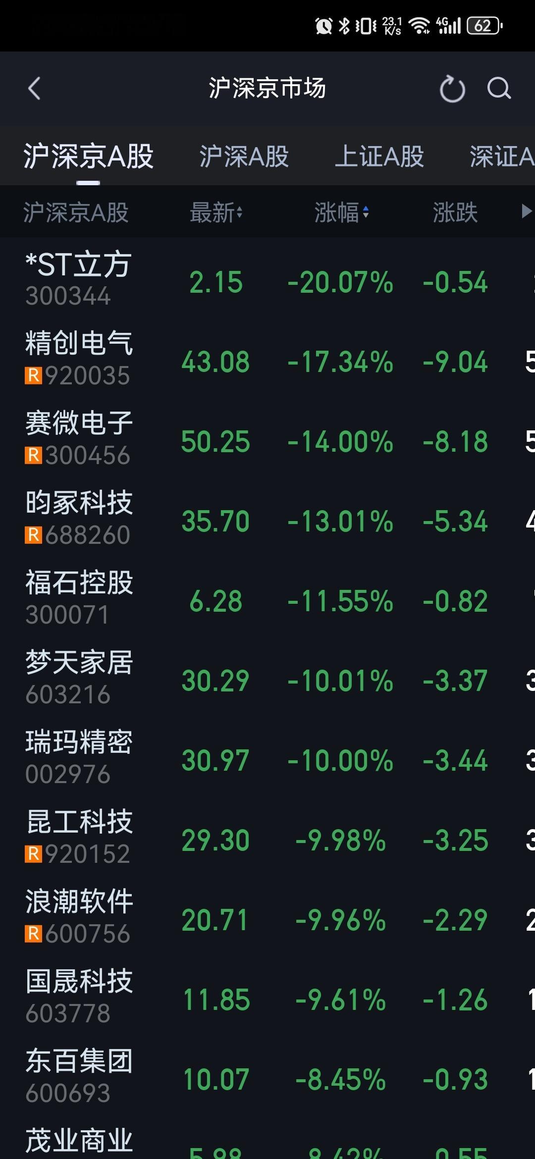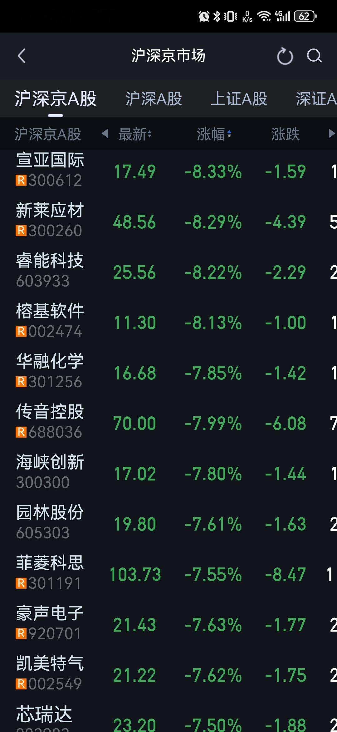 看跌幅榜,没有冤的。