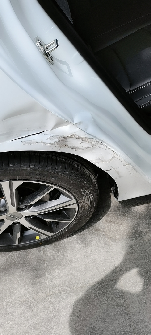 懂车的老师帮我看下 第四代帝豪尊贵型提车第一天回家的路上就被一个货车撞了,关键是4儿子店维修师傅说我弟二张图那个裂口要切割,我该怎么办呀