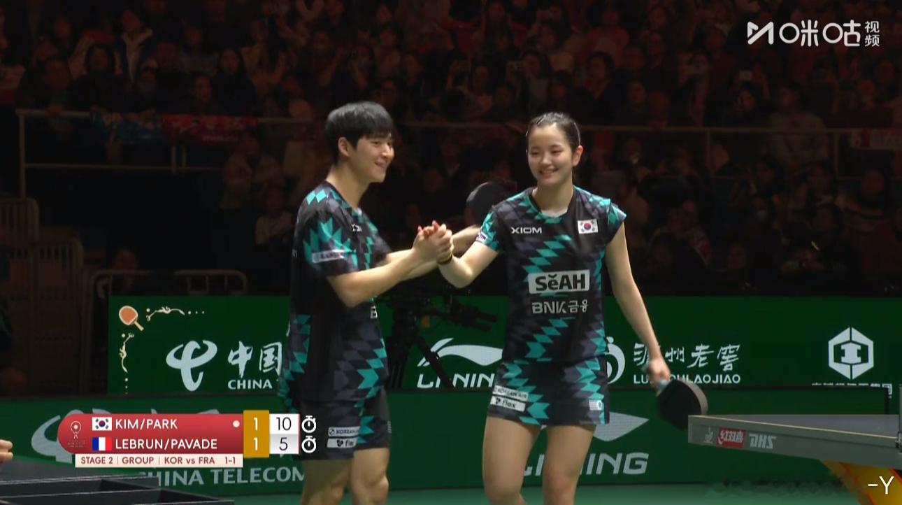 2025混合团体世界杯循环赛韩国2-1法国金娜英/朴康贤2-1 F·勒布伦/帕瓦德(12-14 11-5 11-5)
