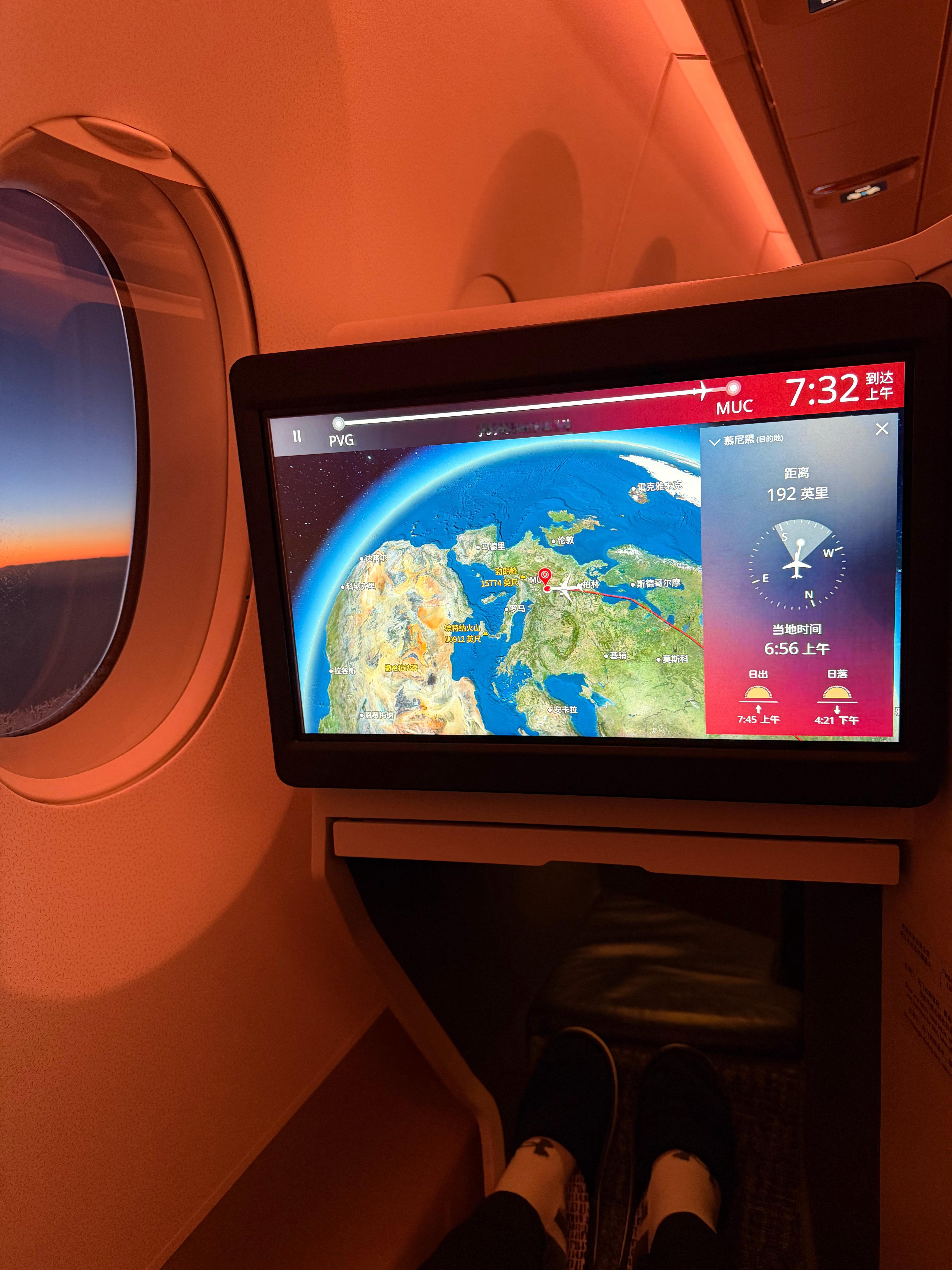 又睡了一觉,舒适一路12小时睡了8小时,吃了一顿早餐,还有半个小时落地,时差7个小时,落地是慕尼黑时间早晨07:30,直奔宝马总部,开启忙碌的一天飞了一路,A359就是比777舒服,是吧 德国