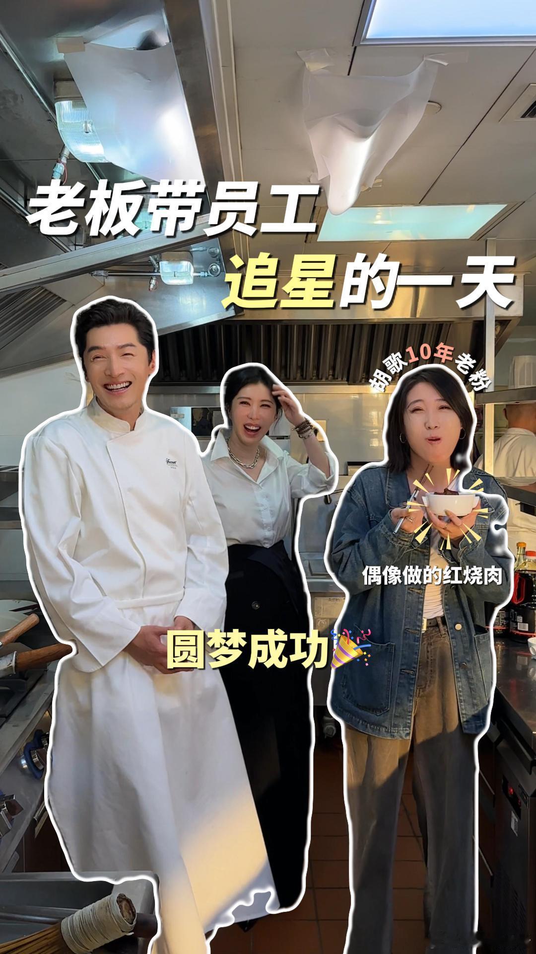 田朴珺帮员工追星胡歌温柔回应 田朴珺这样的神仙老板哪里找,不但帮员工程工见到了胡歌,还吃上了胡歌做的红烧肉!!