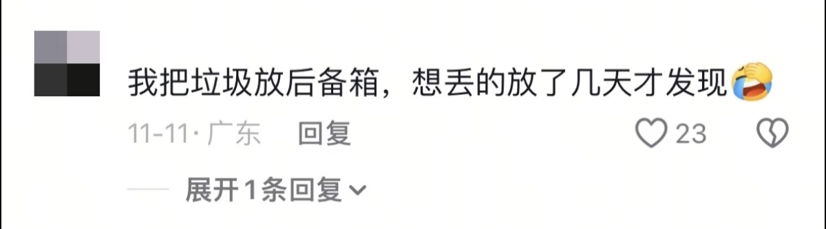 我把垃圾放后备箱,想丢的放了几天才发现