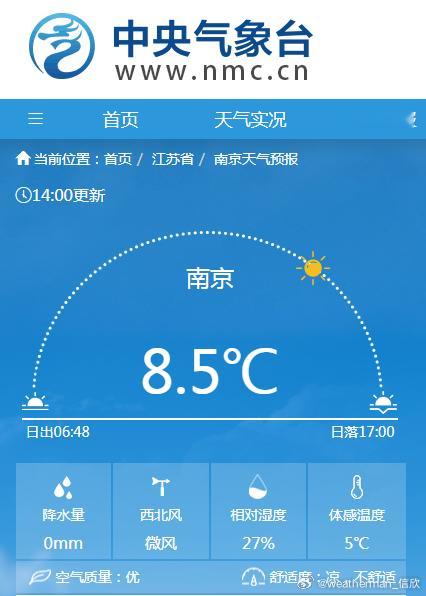 【干燥】今天我国多地在干冷气团控制下,天气干燥。下午14时,北方多地相对湿度不足20%,局地低于10%,长江中下游地区有些低于30%。甘肃肃南只有4%。石家庄15%、天津西青16%、北京17%、郑州17%、济南18%、长沙23%、南京27%、武汉29%。