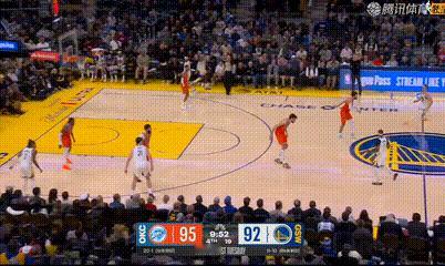 小库里首次登场,目前7中6砍下14分雷霆vs勇士