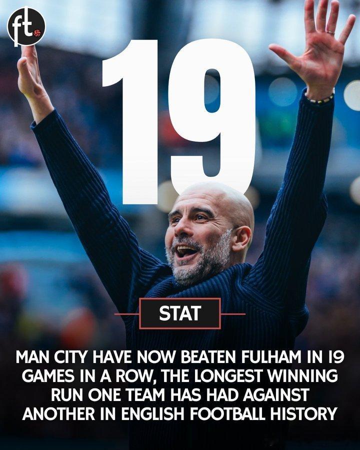 新纪录!曼城已经在各项赛事中连续19次击败富勒姆,创造了英格兰足球历史上一支球队对另一支球队的最长连胜纪录🤯富勒姆4比5曼城 ✅ 5-4✅ 2-0✅ 3-2✅ 4-0✅ 5-1✅ 2-1✅ 4-1✅ 3-0✅ 2-0✅ 4-0✅ 2-0✅ 2-0✅ 3-0✅ 5-0✅ 4-2✅ 2-0✅ 2-1✅ 3-0