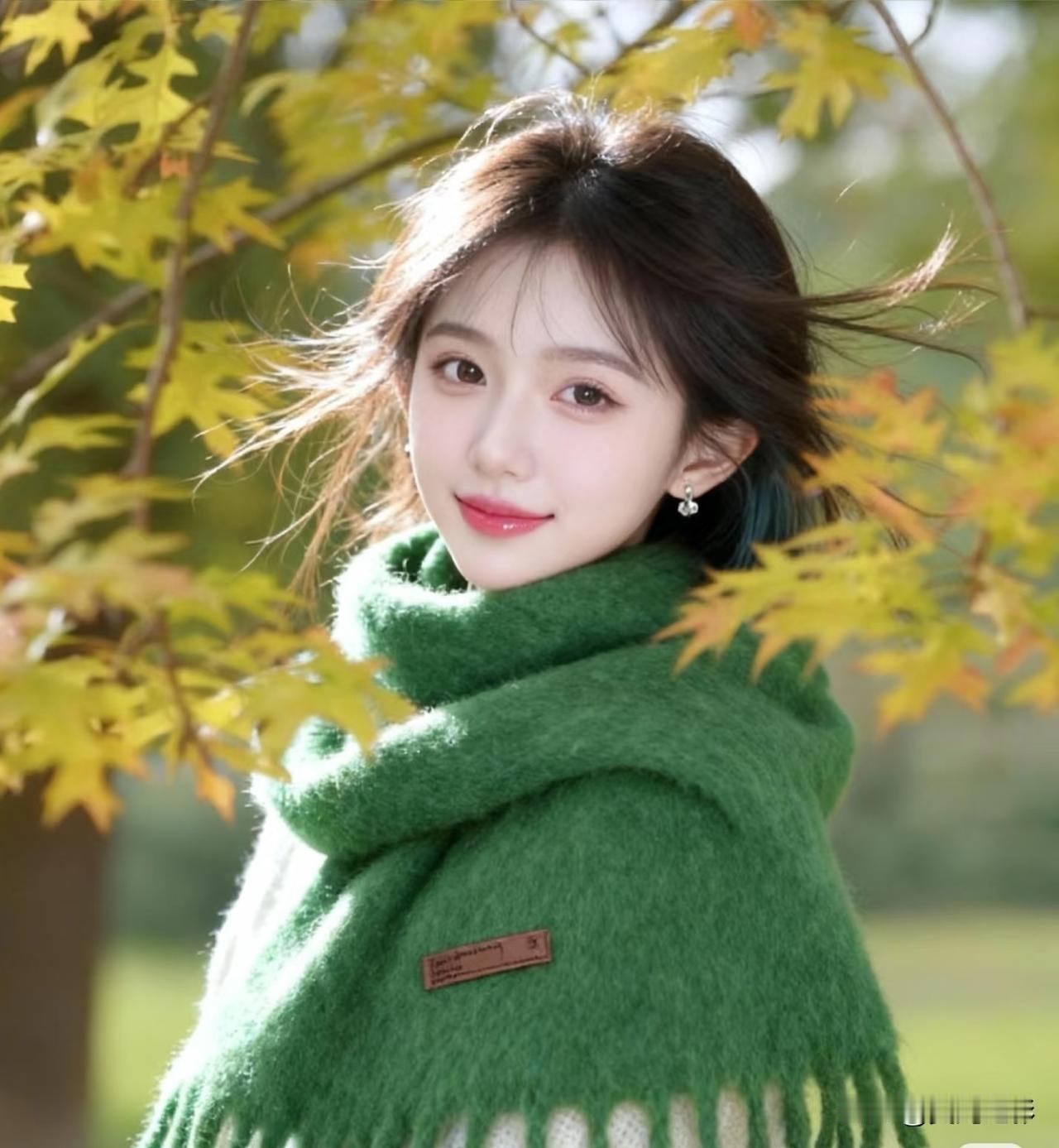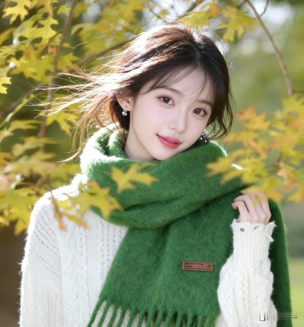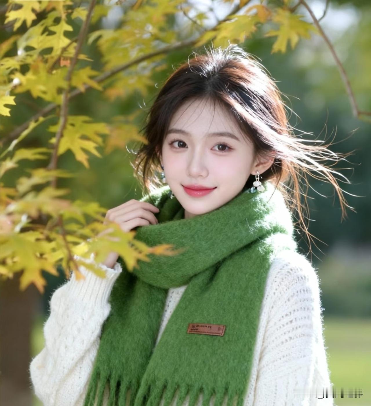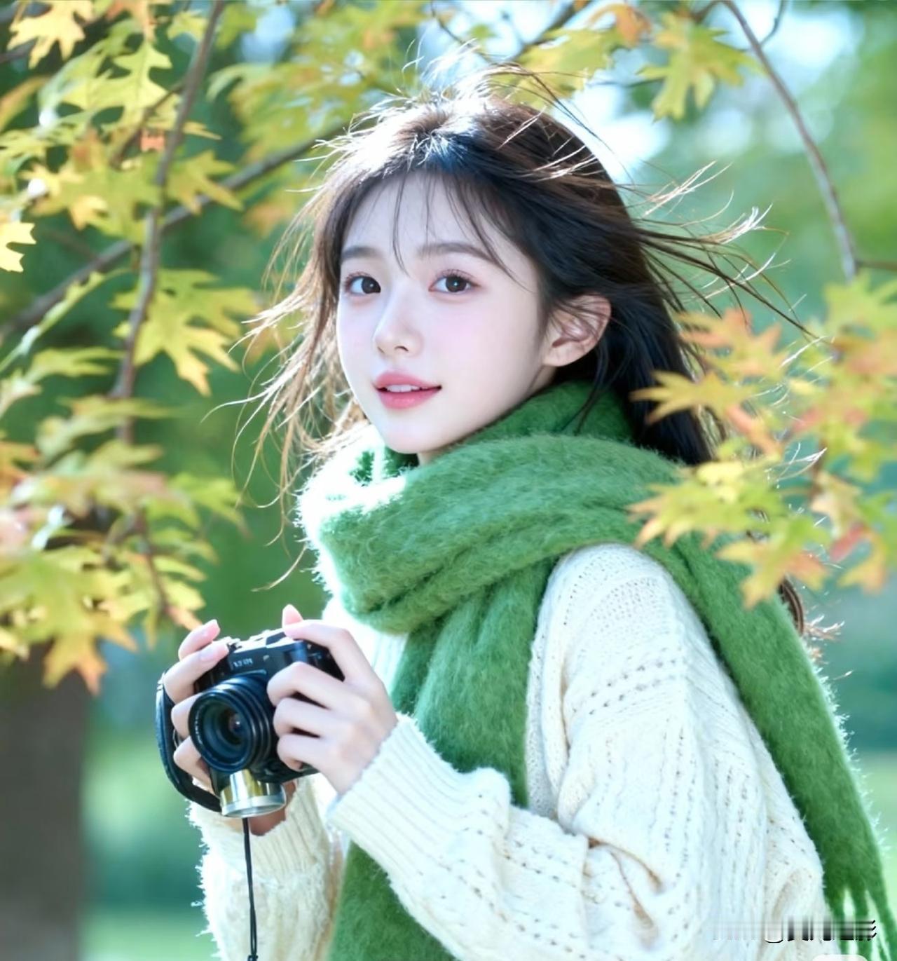 光之影 秋日暖阳下,绿围巾少女,甜美微笑,暖心治愈。 围巾少女