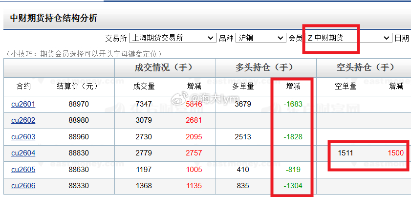 中财期货席位止盈部分沪铜多单,盈利或超3亿席位观察:今天中财期货席位减仓沪铜多单