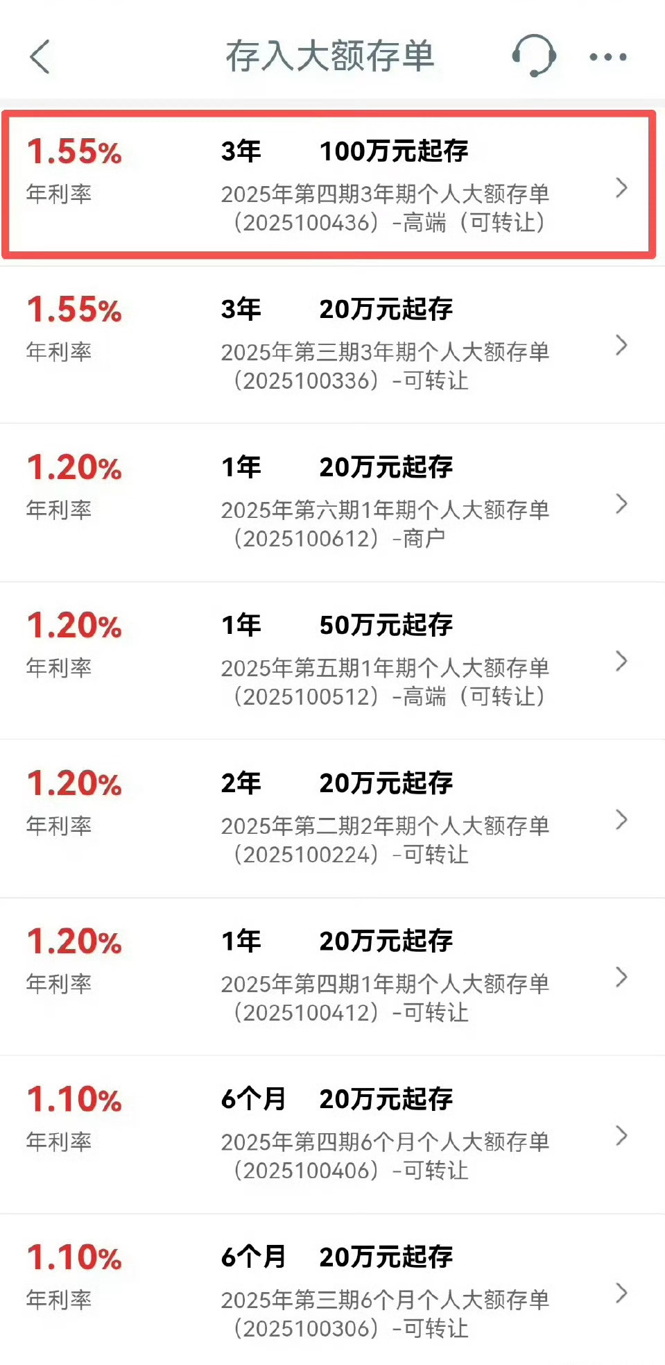工行三年期大额存单门槛100万 对普通人来说,100万存3年和50元存3年利息没差,还不如选灵活的小额定存所以大额存单的特权是??