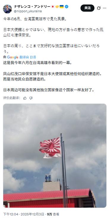 中国人的脸都让这些人丢光了! 看到这条来自高雄的画面,心里只剩下两个字:荒唐。 拍下它的人是一个旅日乌克兰人。 但刺痛的,却是我们自己。 曾经数十万同胞死于侵略,五十年殖民时期被当作次等人对待—— 历史的伤痕依旧在那里,而某些人却主动把象征屈辱的旗帜重新挂回自己的土地上,甚至挂得理直气壮。 这种场面,不只可悲,亦是可叹: 被伤害者遗忘伤痕,比加害者遗忘历史更令人心寒。 苑举正常说“日本人看不起中国人”。 文化上,我们对等级观、对种族偏见向来持批判态度。 可现实中偏偏出现这么一群人,忙不迭地往人家的鄙视链底端钻。 这不是“日本人看不起中国人”,而是某些人先把自己摆成了别人看不起的位置。 无论他们自我认同成什么,在别人眼里,他们就是中国人。 可当他们主动展示这种“失忆式献媚”,别人又怎么可能尊重? 尊严这种东西,不是别人给的—— 可你自己先别把它丢了呀! Source: X