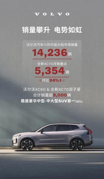 沃尔沃11月销量爆了!新XC70狂卖5354辆,新能源占比近半
