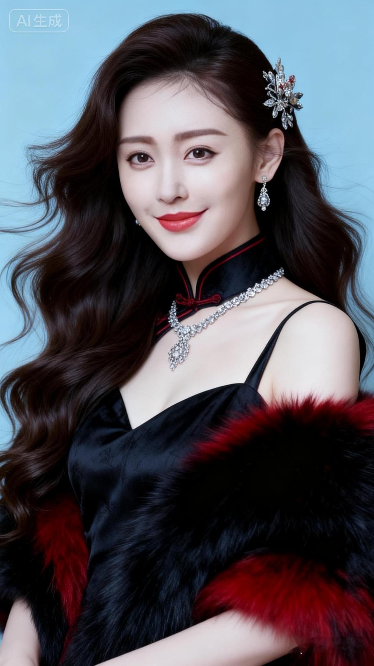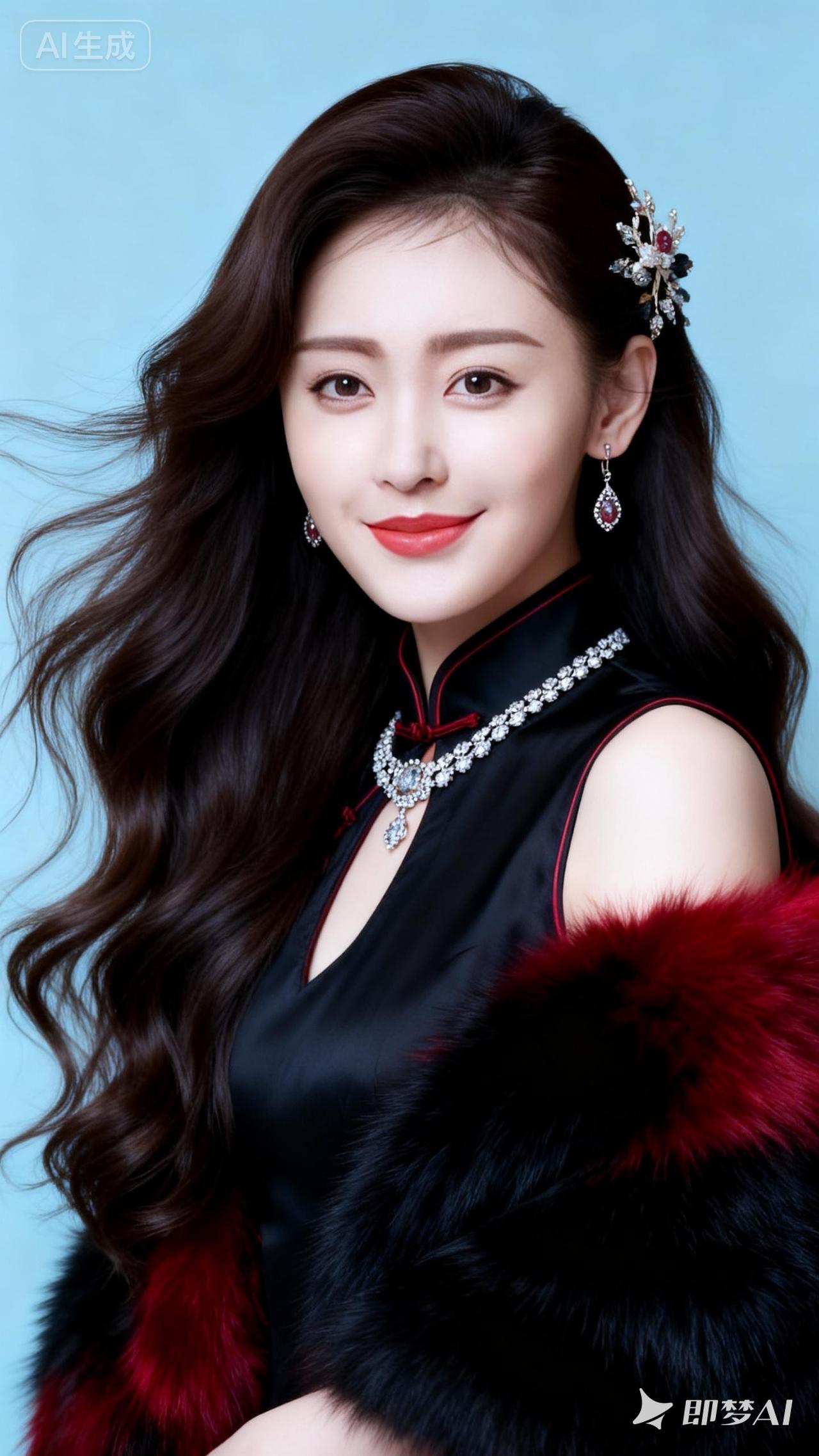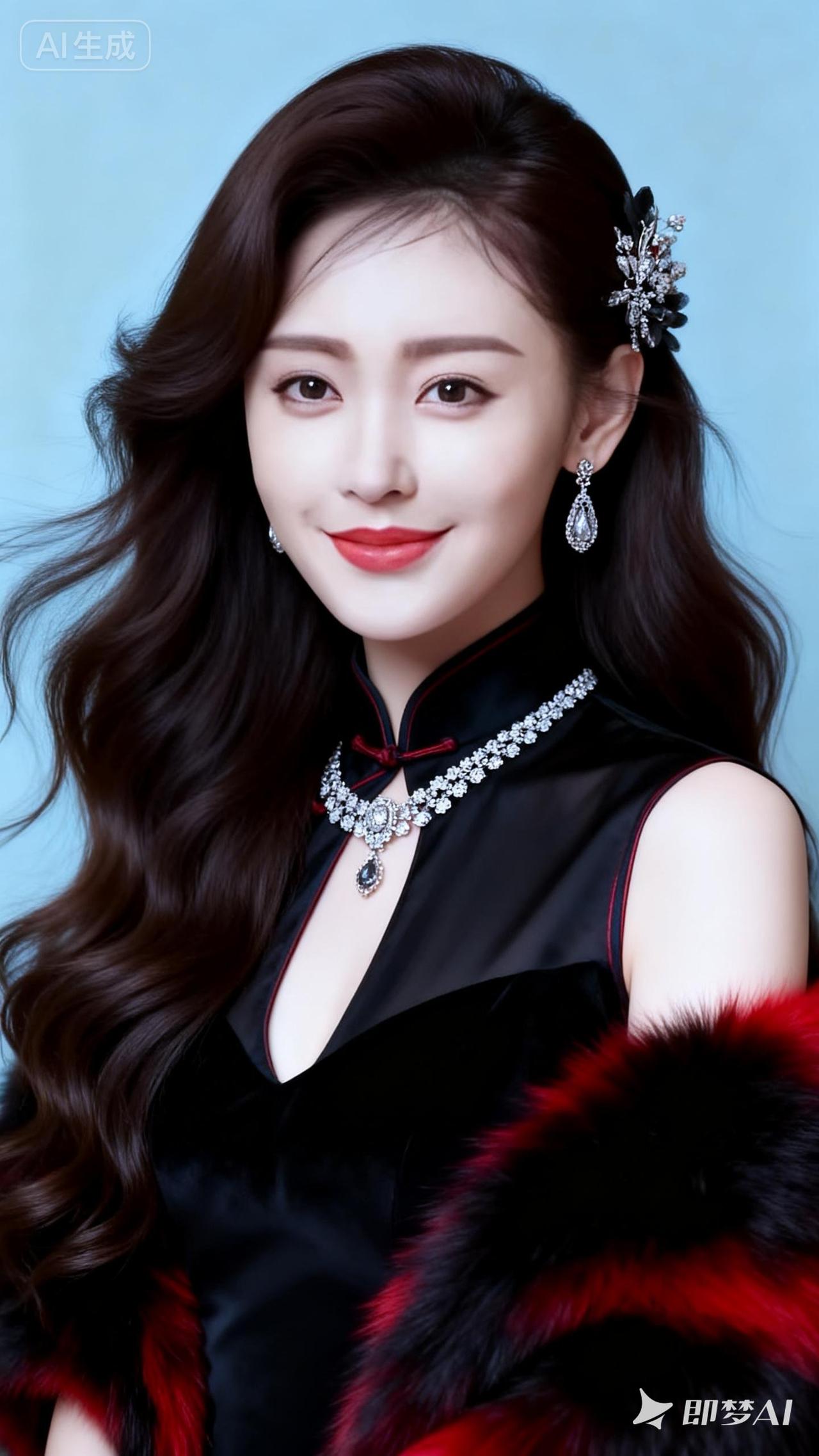 优雅黑裙,红唇轻启,尽显东方韵味