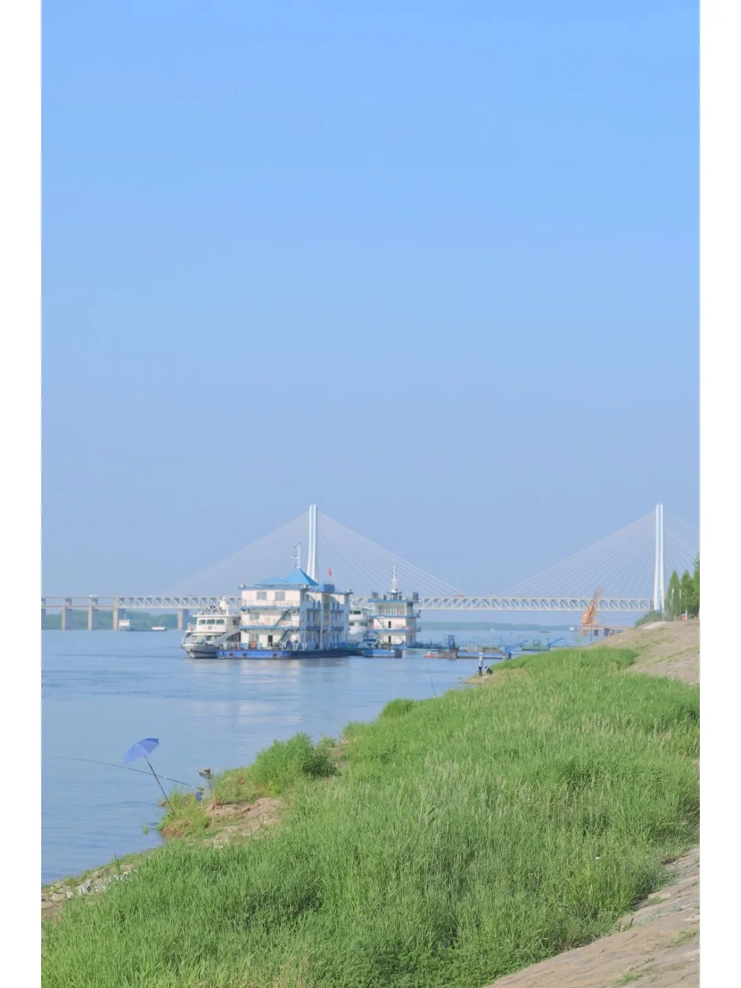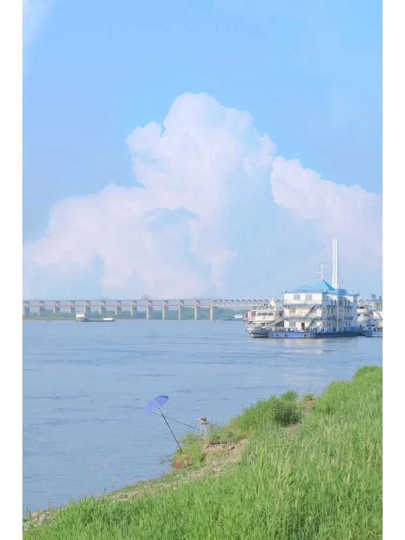 🌿晴天的江边就像海一样,现在江边还有一片草地,仿佛菊次郎的夏天