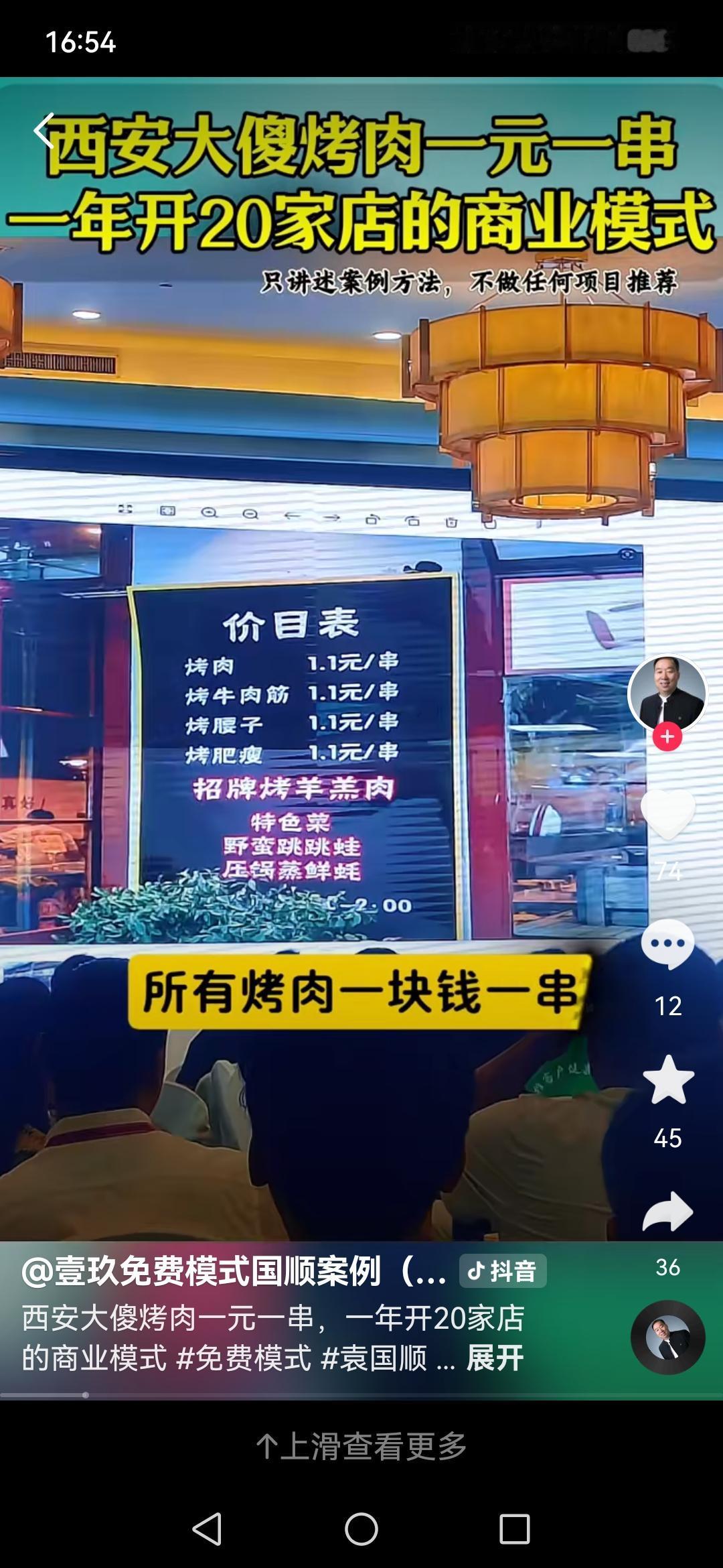 一元一串的烤肉,怎么开出百家店的? 在西安回民街,凌晨两点的“大傻烤肉”依旧座无虚席,食客们举着铁盘抢刚出炉的一元烤串,没人能想到,这个看似赔本的定价,竟支撑起了20家连锁门店,日总营业额突破500万。 老板的秘诀藏在“微利广销+组合盈利”里。一元烤串确实没利润,甚至单串成本都覆盖不了,但它能带来超高翻台率——163张桌子一晚上能翻5轮台,食客为了凑单会点小龙虾、凉菜和酒水,这些品类的毛利能达到60%以上,人均消费最终能冲到91元。 更关键的是供应链和标准化。像西安三宝烤肉这类品牌,直接和内蒙古养殖基地合作,实现屠宰到门店的一体化配送,还定下“无冷冻肉、无添加剂”的铁律,既压低了食材成本,又保证了口味统一,让单店复制变得简单。 云南的南忆大叔则走了另一条路,他曾负债200万,靠一元烤串摆摊翻身,还清债务后开放品牌授权,如今门店超30家。他没搞复杂营销,只靠“真材实料+暖心故事”打动加盟商,还想把文山烧烤带出云南。 这些品牌的成功,本质是看懂了“低价引流、价值盈利”的逻辑,也摸透了普通人对“实惠+烟火气”的执念。一元烤串卖的不是肉,是让顾客觉得“占便宜”的满足感,和深夜里的市井温情。 你觉得一元烤串的模式能长久吗?如果是你开店,会用低价单品引流吗?评论区聊聊你的看法!热点话题