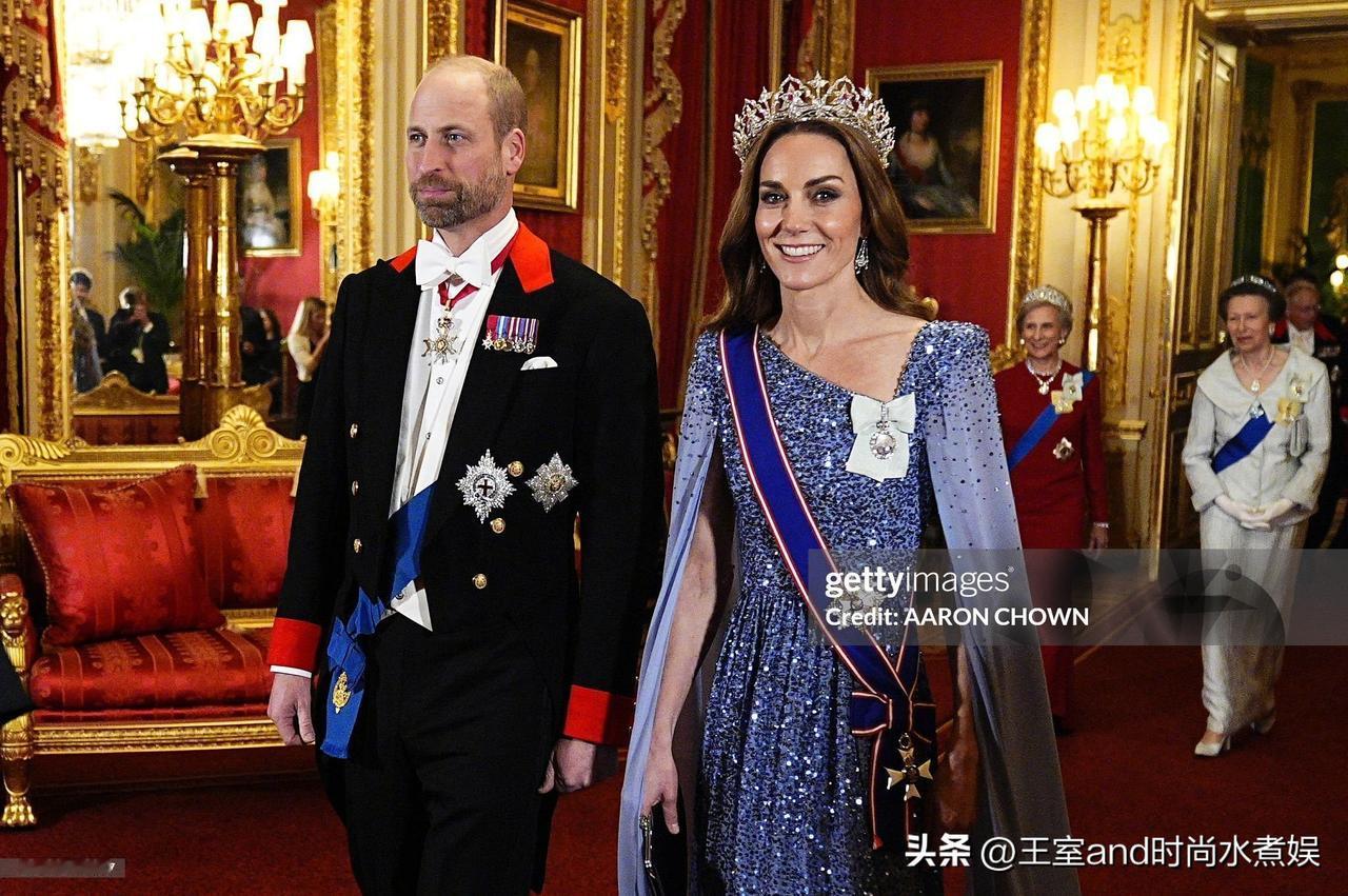 超惊喜! 凯特王妃首度解锁Queen Victoria’s Indian circlet王冠,戴着新王冠,穿着水晶蓝裙,美出新高度了! 12月3日,为了欢迎德国总统夫妇的来访,查尔斯国王在温莎城堡举办了隆重的欢迎晚宴。 凯特王妃闪亮登场,穿着一袭水晶斗篷蓝裙,夜幕之下,裙子上的水晶亮片放着bling bling的光芒,更衬得王储妃光芒四射。 不过最让人惊喜的是凯特王妃嫁入王室这么多年,终于再次解锁新王冠,首度解锁了伊丽莎白女王的维多利亚女王印度王冠。 戴上这顶新王冠,凯特王妃更显雍容华贵,也越来越有未来王后的风采。 凯特王妃
