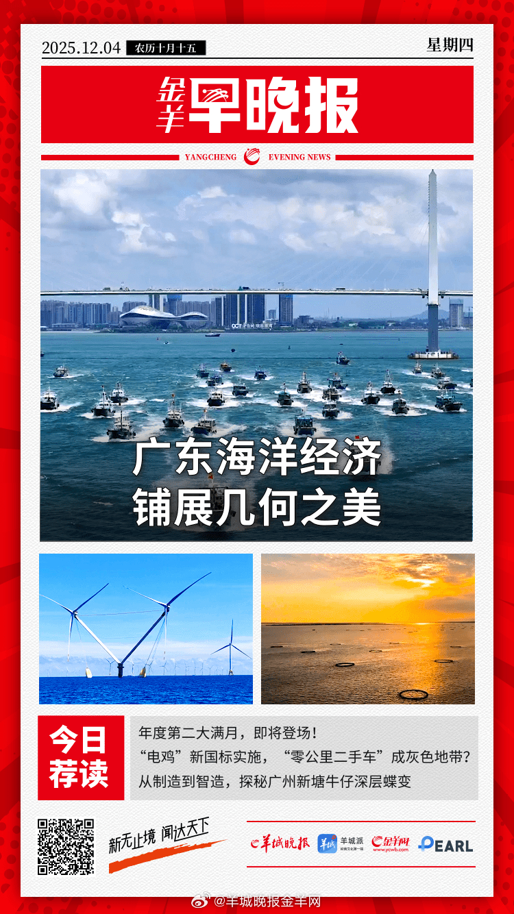 #金羊早晚报# “电鸡”新国标强制实施,“零公里二手车”成灰色地带?“超级月亮”,即将登场! 朱雀三号火箭回收试验失败,过程中发生异常燃烧,原因正在分析 张雪峰发文回应“因污言秽语被处罚”:已深刻反省,以后不会了 从制造到智造、从贴牌到品牌、从跟跑到领跑,探秘广州新塘牛仔深层蝶变 广东海洋经济中的几何密码 2025贺岁档电影票房破20亿元 中足联发布三级联赛财务指标:中超国内球员限薪500万元,“阴阳合同”将被罚降级 【NBA】快船裁掉球队功勋克里斯·保罗 日本学者:高市错误言论给日本各行业带来危机 美财长无限期取消访问阿根廷计划 德国外长宣布再投入2亿美元援乌 更多精彩报道,请扫码关注羊晚全媒体报道! #中日外交局势##媒体评吸毒记录可封存##李嘉格回应恋情#