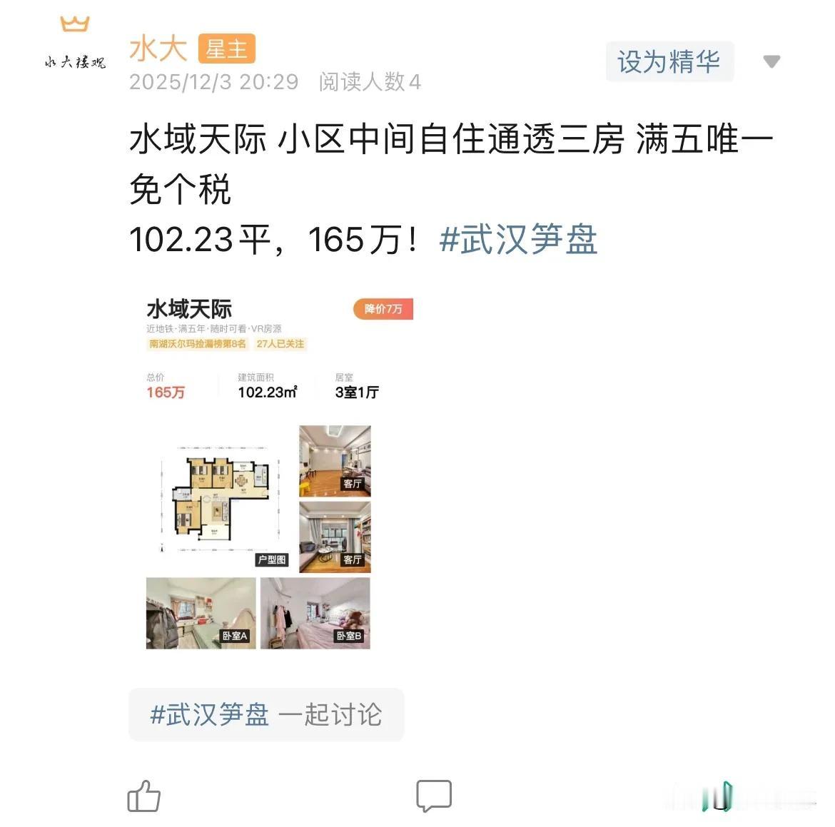 今日美居 保利中央公馆1万单价,水域天际通透三房1.6单价,四新品质小区1万出头。 美出天际了!